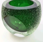 This stunning vintage votive candle holder was distributed by Fifth Avenue Crystal, dating back to the 1970s. This exquisite piece features a unique "geode" design, showcasing a vibrant green interior encased in clear glass with a thick sugared or frosted texture. The holder is elegantly crafted with sliced windows on two sides, allowing the enchanting green hue to radiate beautifully when illuminated. Specifications: Width: Approximately 4 inches Height: Approximately 3 3/8 inches Elevate your home decor with this timeless candle holder that combines vintage charm with modern elegance, perfect for adding a touch of sophistication to any space. Pre-owned item, used condition showing signs of wear and use. No chips, cracks, or repairs. Missing brand label. All images provided accurately represent the item(s) you will receive and should be regarded as an integral part of the description. We encourage you to carefully review each image. If you have any questions or need further details about this listing, please feel free to reach out to us.