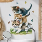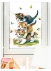 Figurine Animal Cat Plastic Multicolor Modern Wall Mount Small Sticker Decor