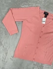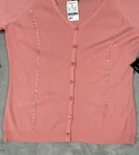 Elevate your wardrobe with the Finity Petite Women's Button Front Cardigan. This stylish peach-colored sweater is perfect for any occasion, whether you're dressing up for a night out or keeping it casual with jeans and a t-shirt. Made from a soft blend of nylon and rayon, this cardigan features long sleeves and a button accent for added flair. Ideal for petites, this cardigan comes in a size M and is brand new with tags. The quality craftsmanship from Finity ensures that this sweater will last you for seasons to come. Don't miss out on this chic addition to your collection.