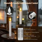 No Batteries or Future Expense Required - Rechargeable function eliminates the need for you to purchase additional batteries. Ideal for everyday home use as well as for wedding table decor. Good choice as Thanksgiving/Christmas gifts, show your best wishes for family & friends. with Convenient Charging Station - Simply laying your rechargeable flameless taper candles on the charging station. Fully charged in 2 hours, provides more than 200 hours of warm candlelight under the medium brightness, or longer if you dim the light via the remote! More than 20,000 hours of lifespan, durable to use! Fits Most Candle Sticks Holder Decor -【Candle Size: Height 6.7" x Diameter 0.78", makes it match with most candelabra (it can also stand alone).】Set them into your Halloween taper candle holders or placed them on the Thanksgiving centerpieces for tables or use them as Christmas window candles to to create festive atmosphere. Flameless Candles with Remote Control - Turn these taper candles ON via the bottom switch first, then you can adjust the light effect, flicker frequency, brightness with the remote - which is great if you put them up high or hang them on a chandelier/bookshelf for Halloween/Christmas Themed party. And you can also set a cycle timer for 2/4/6/8 hours. Versatile Decorative Rechargeable Candles - Elevate any space with the warm and enchanting glow of these rechargeable reusable taper candles. Classic white color shows the real taper candle appearance. Updated flickering effect as natural as breathing. Perfect for adorning homes, fireplace, tables, parties, weddings, bedrooms, and various events throughout the year. Flameless LED Taper Candles Set -【You Will Get: 10pcs Flameless Candles with Remote + 1*Charging Station + 1*USB Charging Cable. Designed box is nice as a gift.】Our flameless candles have been tested before sale. If any quality problems, please feel free to get in touch with our store customer service and we will offer you a satisfactory solution within 24 hours. Note: Please fully charge the battery for the first time. For each charge after that, deplete the battery completely before recharging to extend its lifespan.
