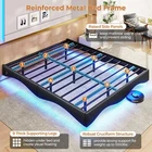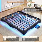 About this item 【Modern Wavy Floating Bed Frame】Unlike traditional bed frames, this floating bed frame full size is supported by reinforced metal main frame with inside hidden legs, which provides sturdy support while prevent from bumping toes. Aesthetic wavy design plus amazing under bed lighting amplify the visual floating effect of weightlessness and levitation. The modern black floating bed frame exudes elegance while offers a dreamy and comfy sleeping atmosphere. 【Fast Charging Type-C & USB Port】The full size bed frame with led lights features 1 TYPE-C (5V/3A) for fast charging and 1 USB port (5V/2A), making it convenient for charging your electric devices within hand’s reach. No need to worry about low battery having this full bed frame with charging station around. 【Smart Under-Bed LED Lights】Our floating full size bed frame possess three-sided led light strips, creating a full coverage of under bed lighting effect. The smart led light supports over 60000 colors, 29 dynamic modes, 0-100 level speed and brightness adjustments. You can freely adjust color, brightness, mode, and timing/mic function via APP or remote control, providing a relaxing and leisurely atmosphere for your bedtime. 【Stable & Sturdy Construction】Composed of 11 metal slats and 6 thick leg supports, this metal bed frame boasts unexpected stability and durability, ensuring a weight capacity up to 1000lbs. You can directly use this bed frame with no box spring needed. Evenly distributed metal slats can provide full support and ventilation for your mattress. 【Noise Free & Easy Assembly】Comes with detailed instruction manual and installation tool, you can finish assembly step by step. Non-noise strips on the joints eliminates friction and reduce noise, ensuing a quiet sleeping night. This visual floating full size bed frame is simple and easy to assemble. Please feel free to contact us if any questions about this floating bed. Product Description Unlike traditional bed frames, this floating bed frame full size is supported by reinforced metal main frame with inside hidden legs. The modern black floating bed frame exudes elegance while offers a dreamy and comfy sleeping atmosphere. Our floating full size bed frame possess three-sided led light strips, creating a full coverage of under-bed lighting effect, providing a relaxing and leisurely atmosphere for your bedtime. Features 1 TYPE-C (5V/3A) for fast charging and 1 USB port (5V/2A), making it convenient for charging your electric devices within hand’s reach. No need to worry about low battery having this full size bed frame with charging station around. Previous page Next page Creative Hidden Legs Robust Metal Structure Modern Wavy Design Under Bed Space Modern Black Upholstered Platform Floating Full Size Bed Frame with LED Lights
