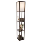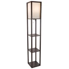 The Etagere Tall Lamp by is a stylish and practical piece that will beautifully illuminate any room of your home. The white fabric shade perfectly diffuses the light for a soft ambient glow, and the included replaceable LED bulb provides an efficient lighting solution. This corner lamp also serves as a convenient storage solution with 3 tiers of open shelving to display photo frames, books, plants, vases, and other accent décor. Use this sleek modern floor lamp for living room lighting or in your bedroom, family room, office, or den. IMPORTANT: is committed to providing the consumer with the absolute best price and value on all of our products. NOTE: This is an exclusive product of and ONLY Floor Lamps for Living Room by are GUARANTEED to be genuine. Avoid buying counterfeit products and transacting with unauthorized sellers. FLOOR LAMP WITH SHELVES – Featuring 3 tiers of shelving, this versatile etagere style standing lamp is a convenient and attractive storage solution. It is a great way to showcase your favorite books, plants, photos, or other small accent décor pieces. AMBIENT LIGHTING – This corner light will complement any home décor style while providing relaxing illumination in your bedroom, living room, or office. The open rectangular fabric shade creates a diffused glow for a soothing atmosphere in any room. ENERGY SAVING EFFICIENCY – The shelf lamp includes one replaceable LED bulb that provides an efficient and long-lasting alternative to traditional incandescent bulbs. The on/off function is controlled by an attractive metal ball pull chain. EASY TO ASSEMBLE – This LED lamp is ready to assemble and comes with clear, easy to follow instructions as well as all the required hardware. The polyester fabric shade is also collapsible for convenient assembly and storage. PRODUCT DETAILS – Materials: Polyester Fabric and MDF Wood with Brown Veneer. Dimensions: (L) 10.25" x (W) 10.25" x (H) 62.75”. Shelf Height: 15”. Cord length: 137.75”. Shelf Capacity: 10lbs. Metal ball pull chain for on/off function. Color: Brown.