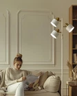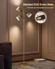 Floor Lamps For Living Room Bright Lighting -- The led floor lamp uses a unique 3-light design, each light supports 350° rotation and 180° vertical adjustment, supporting individual control of brightness. With its stylish design and minimalistic sleek lines, the floor lamp for bedroom fits well with modern, urban, casual, and artistic decor styles. Ideal mordern floor lamp, bedroom, office, study, bar, club, restaurant, etc. Standing Lamp -- This corner floor lamp bright lighting is designed for a retro and elegant look that adds a aesthetic decor with beautiful soft ambient light to any space. This modern floor lamp is perfect for your family or friends. Convenient Reading Lamp: Rotary ON/OFF switch on the lamp-post is convenient to turn on/off the tall floor lamp without having to get up and press a wall switch, it fits for any corner on your bedroom or living room. Eye Protection & Easy to Assemble -- This white floor lamp light source is stable without flickering, and creates a soft and smooth atmosphere with light. Prevent eye fatigue, and maintain an even frequency of light delivery, with a purer light. This tall lamp is very easy to put together, just follow the steps in the manual and assemble it from the top of the lamp to the base, and you can finish the assembly in 5 minutes. Safety choice: We attach great importance to the quality of floor lamp with shelves during the production process. E26 base socket is compatible with various bulbs, such as CFL,RGB,Suggest use Edison bulb. Support up to 40 watts maximum. (Note: Bulbs not included)