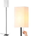 [Sturdy & Safe Design] The floor lamp has a well-weighted and sturdy metal base with non-slip cotton pads; it is not easy to tip over even if accidentally hit by children or pets, even on the carpet. [Energy Saving LED Bulb] The lamp includes a 9W 3000K warm white LED bulb equivalent to an incandescent bulb burning 60 watts; it uses less energy with a longer lifespan of more than 25000+ hours, reducing the electricity bill by up to 80%. The maximum compatible light source wattage is 60.00 watts, and no batteries are required; it provides a brightness of 800.00 lumen. [Comfortable Diffused Lighting] The tall floor lamp features a high-quality linen shade that softens and filters light into a diffused glow with no flickering and no buzzing; it provides a comfortable glow to protect your eyes with less irritation, making it easier to focus on activities like reading, working or sewing. The comfortable light also allows you to relax quickly. [Simple Modern Aesthetics] The simple and modern design of the floor lamp tall matches any styles of home decor; it can be placed in living rooms, bedrooms, offices, kids' rooms, guest rooms, or next to couches, providing the needs of brightness while serving as an elegant decoration in your home. The suitable size allows pole lamps for living rooms to stand in any corner or narrow area, making them space-saving. [Easy Tool-Free Assembly] The square floor lamp is easy to assemble in just 5 minutes without any tools required; simply insert all tubes and screw them firmly (remove the "cable wire protector" before installing the tubes), put the shade on the socket and tighten it with the socket ring, then install the LED bulb.