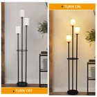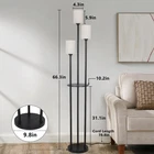 【3-Light Floor Lamp with Shelves】Combination of three beige fabric lampshades and black elements makes this floor lamp ideal for industrial, farmhouse and modern minimalist home styles. Three light poles form a solid structure between the shelf and the metal base, allowing this standing lamp to be stable enough. The weighted base of the floor lamp for living room is designed to prevent tipping and keep you and your family safe at home. 【Upgraded Double Shelf Design】This modern floor lamp has a 10.2inch shelf, which is made of high-density fiber material(maximum load 50 pounds) and the upgraded metal base can also be used to store and display objects. You can put plants, photo frames, books or any small things you want on it. Whether you install this industrial floor lamp in your living room, bedroom, nursery, study, office, bedside or corner sofa, it will bring just the right light and a nice home ambience to your space! 【Convenient PedalSwitch】There is a on/off foot switch on the cable of the black floor lamp, which is very convenient to operate. You can vacate your hands to do other things, saving you time to bend over and turn off the lights. The 79inch long cable allows you to move this tall table lamp indoors at will. Whether you use this floor lamp for bedroom as a lighting tool, reading lamp or home decoration, it will be an ideal corner floor lamp choice! 【Lamp Size & E26 UL Socket】Overall size: 10.2"(L)x10.2"(W)x66.1"(H). Fabric lampshade size: 4.9”(L) x5.7"(H). This floor lamp with table is equipped with 3 E26 UL sockets, compatible with led, cfl, incandescent, tungsten and halogen bulbs (Bulbs Are Not Included, Max 40W). This 67inch floor lamp for bedroom can be easily assembled without any tools, you just need to follow the instructions to screw all the parts together. 【24 Months Professional Service】√All sockets, wires and switch of this 3 light rattan floor lamp has passed UL certification, safe and reliable. √has been deeply involved in the lighting industry for more than 10 years and has a professional after-sales team. √We promise to provide you with 24-month parts replacement service. √If you have any questions about the wicker floor lamp, we will provide you with professional services.