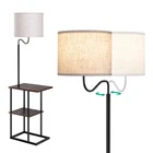【Space Saving Lamp with End Table】With 2 tables underneath, this lamp/table combo allows you to put iPad, phone, books, magazine, TV remote, drinks, tissue, glasses and any other small items in easy reach; 11.8" wide table is ideal for small space such as between recliners, bedside, guest room, office, apartment, etc. 【Mid Century Modern Design】Designed with black metal legs, wood shelves and linen lampshade, this mid-century stylish floor lamp matches other furniture and decors from traditional to contemporary perfectly, creating a cozy and comfortable ambiance for your living room, bedroom, couch area, reading corner, etc 【Soft Light for Reading】Linen drum lampshade is thick enough to soften beams and minimize glare, the modern floor lamp can be used for large ambient light illumination as well as accurate area lighting for working, reading or needle work in the couch, chair and bedside area, protects your eyes 【Stable & Sturdy】Rectangular metal frame ensures stability and safety, prevents any subtle wobble when moving the floor lamp, built-in bulb won't be knocked off by your cats; adopted with solid wood, these thicken shelves are scratch-resistant, waterproof and easy to clean 【Easy to Assemble & Rotary Switch】No tools required, this tall floor lamp with shelves is easy to assemble in several minutes; designed with a rotary switch, convenient to turn it ON/OFF even lying on the couch or bed; suits E26 bulbs (LED/CFL ≤ 10W; incandescent Bulb ≤ 60W), bulb not included