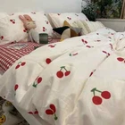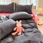 >> Warm Tips: Check your duvet(blanket) size firstly, then choose the right bedding set size according to your duvet size >>Twin 3pc for 1m bed: ------ Duvet Cover- 150x200cm (59x79inch) *1pc ------ Bedsheet- 160x230cm (63x91inch) *1pc ------ Pillowcase-48x74cm (19x29inch) *1pcs >>Twin 4pcs 150x200 : ------ Duvet Cover- 150x200cm (59x79inch) *1pc ------ Bedsheet-200x230cm (79x91inch) *1pc ------ Pillowcase-48x74cm (19x29inch) *2pcs >> Full 4pcs 180x220 : ------Duvet Cover-180x220cm (71x87inch) *1pc ------ Bedsheet-230x230cm (91x91inch) *1pc ------ Pillowcase-48x74cm (19x29inch) *2pcs; >>Queen 4pcs 200x230: ------ Duvet Cover-200x230cm (79x91inch) *1pc ------ Bedsheet-230x230cm (91x91inch) *1pc ------ Pillowcase-48x74cm (19x29inch) *2pcs >>King 4pcs 220x240 ------ Duvet Cover-220x240cm (87x94inch) *1pc ------ Bedsheet-230x250cm (91x98inch) *1pc ------ Pillowcase-48x74cm (19x29inch) *2pcs 1.Manual measurement 1-4cm error is allowable 2.different country size is different ,please check it before you buy 3.due to the long distance transporation problem ,the product will be a little fold,the product not so flat as picture,but does not affect the use 4.cover set without Comforter,only cover