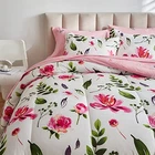Return Policy Fast Delivery Trusted seller Floral Comforter Sheet Set 7 Pieces Bed in a Bag King Size White with Green Leaves Pink Flowers Reversible Bedding Set (1 Comforter 2 Pillow Shams 1 Flat Sheet 1 Fitted Sheet 2 Pillowcases) Product Description Style:All season design Comforter - Red Flower on White Style. Great style for anyone. Gift choice for any holiday! Bed in a Bag design, Just open it. WHAT IN THE PACKAGE:7 Pieces King Size Bed in a bag including: 1 King size comforter 101”x88”, 2 pillow shams 20”x36”, 1 King Fitted Sheet 78" W x 80" L + 12", 1 King Flat Sheet 102" W x 105" L, 2 King Pillowcases 20" W x 40" L ; The fitted sheet is 12 inch Pocket. Fits mattresses up to 12". MATERIAL: Our comforter is made with 100% microfiber outer fabric and ultra soft microfiber inner fill. It is Durable, breathable and machine washable. 90GSM Out fabric and 300GSM MICROFIBER FILLING help you get warm very easy in cold weather. The sheets, pillow shams or pillow cases are made on 90GSM fabric, very soft and comfortable for a whole night sleep. Easy Care: Design for all season, You can use it in summer. Machine wash cold separately on gentle/delicate cycle. Tumble dry on low. CUSTOMER SERVICE INCLUDED -- If you have any question about our product, please feel free to contact us on . Uozzi Home will help you in 24h :) Shipping Returns Payment Shipping Shipping is FREE to all addresses other than APO/PO boxes in the lower 48 states. All our stock ships from US-based warehouses. Shipped via USPS or UPS (depending on location and package weight) Unless stated otherwise, all orders will ship within 24-72 hours of your payment being processed. Check our feedback to see the great reviews of FAST shipping we offer. Returns Seller does not accept returns Payment We currently accept payment via eBay managed payments only. Once payment is cleared, we will dispatch your shipment within 1-3 business days. Please refer to the "Shipping" tab for more information regarding shipping speed to your destination.