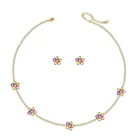 Flower CZ Crystal Wedding Jewelry Set Cubic Zirconia Choker Necklace Stud Ear...