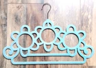 Set of two (2) velvet floral shape hangers organizers for hanging ties, belts or scarves. Or, use to display at craft markets. Dark pink flower shaped hanger measures 10" in diameter. The ombre teal blue floral shaped one measures 18.25" x 9" x 1/8", has a tiny mark on it (see 5th photo). Prompt shipment! Shipment: I ship same or next day and have packages scanned at the counter. In-transit delays are possible with USPS / FedEx due to labor shortages / increases in volume. Any delays of your package while in transit to you are not my responsibility or fault . I have no control over the package once it is accepted/scanned at USPS or FedEx. Therefore, no refunds will be issued by me for items received after the estimated delivery date, or if the item is scanned ‘delivered’ and then stolen from your porch. Delayed, Lost, or Stolen Packages: If your item is delayed or lost, contact me. I can reach out to the carrier on your behalf and put a tracer on it. If your item is stolen, you will need to file a claim directly with USPS or FedEx. I can help you with that. If you open a claim through eBay, they take the full refund out of my pocket which includes the price of the item, the shipping, and they keep fees charged. Please don't do that to me. Pricing: Offers and counter-offers are appreciated and most often accepted. If you make an offer and it is accepted, please pay for the item promptly. Issues with Item: Scams are also becoming more frequent with some buyers. They will claim an item is not as described in order to get the purchase price refunded and keep the item, or not have to pay for return shipping. I’m not Amazon. P lease don’t scam me with a false ‘item not as described’ return claim. As a buyer, I ask that you do your due diligence before making a purchase - Ask questions before bidding, making offers, or purchasing. Pictures in the listing also serve as part of the item description. Review them and request more if needed. As a seller, I sometimes miss things – never on purpose. I sincerely do my best to be as accurate as possible. If that happens, contact me first with a benefit of the doubt attitude and the issue will be worked out. Feedback: Lastly, I want your positive feedback! If you leave negative feedback, eBay will take away my discount on fees in addition to lessening the visibility of my listings. Some buyers, unfortunately, blackmail sellers by threatening negative feedback if they do not get their demands met. Please don’t do that to me either. I enjoy having an eBay store and selling items that make people happy to find and purchase! Thank you in advance for your business!