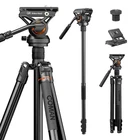【NEW Q6 Fluid Head】 Multifunctional aluminum camera video tripod,newly upgraded Q6 gimbal is compatible with DJI RS2/RS3 ,Manfrotto Quick Release Plate,supports 360 ° panoramic view and+90 °/-70 ° tilt, which can bring a good feeling for smooth operation and easily capture stable and smooth videos 【Heavy Duty Metal Camera Tripod】Made of high quality aluminum alloy, the tripod is sturdy and lightweight.Telescopic drag handle can be retracted and detached, space-saving design for easy shooting,ideal for field and landscape photography or outdoor video shooting and filmmaking.Side 1/4" side screw holes for microphone, monitor or light 【Upgrade Quick Installation System】Compared with the traditional slide-in structure, press the QR plate directly from the top of the head and lock it within 1 second,or you can quick locking and releasing of the pull bolt the QR plate via the side,convenient to switch between tripod and gimbal shooting,for photographers quickly place the camera.Equipped with foldable panels, more possibilities for angle locking to switch between horizontal and vertical lenses.With L-shaped hexagonal key, the camera can be fixed without the need for additional tools 【Adjustable Height】360°thickened footbed, anti-skid design, fully applicable to complex terrain.Weight capacity of 10KG and folded length of 56cm, 4-section column legs with knob lock allows you to adjust the working height from 22.8" to 69.3".Unique internal quick plate update design with wrench allows photographers to quickly connect the camera without any other tools 【Multifunctional Tripod 】 The monopod with 180° upward folding legs, easily converted into a monopod by combining the center column with the detachable tripod legs; reversible center roll ,the monopod can be adjusted according to the different shooting needs of the photographer