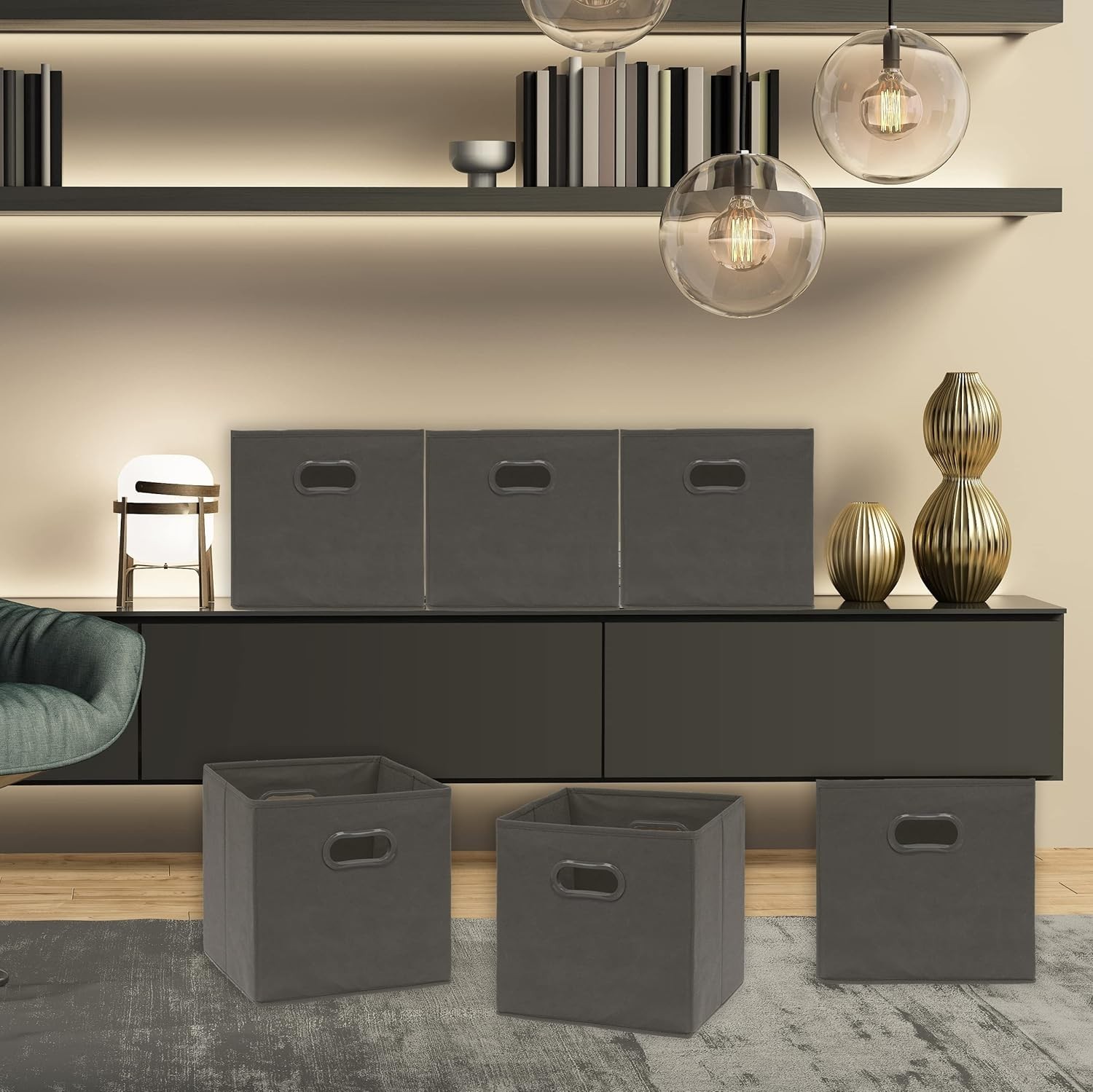 Cube Storage Bins 13×13 Linen Foldable Box with Handles, Silver Gray