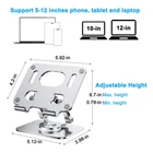 Durable PC Stand for Desk Get Your Study and Work Elevated Adjustable Height and tilting Angle: take this flexible macbook stand for desk, you can sit and rise the height from 4.7 low to 12 inches high, provides to right amount of lift to raise up your laptop screen to eye level. Flexible 360 Degree rotation base: multiple rotating adjustments for an ideal slanted angled position, stable for typing on the keyboard, a solid computer elevation stand designed based on ergonomic shoulder and neck. Compared with clear acrylic laptop stand, our lightweight whole folded case (one piece, no assembly required) is well made with aluminum alloy tripod structure, which is heavy enough to stably hold up your heavy duty notebook. Space Saving Swivel iPad Holder Stand Raiser: easily fold up flat for traveling, you can use as a cookbook holder or a compact elevator laptop stand. Anti-slip and Anti-Scratch grip pads for stable placing: nonslip rubber avoid scratching of your desk and devices, also allows you to tap on the laptop without shifting around or tipping over, well standing on airplane tray and bedside tabletop, etc. With hollow design, this laptop airflow stand for tablet provides great heat dissipation and airflow to cool your PC, perfect for laptops with vents underside. Ultra thin raising laptop easel bracket is suitable for 10 inch, 11 inch, 12 inch laptops and drawing tablets. Our laptop lift notebook stand is an ergonomic computer desk accessories while watching chrome book video, playing game, making phone call, viewing recipes, using Facetime or YouTube in home, office table and plane, etc. What’s Included: 1x 360 ° Adjustable Tablet Stand Holder, Silver Fold flat airplane tablet holder stand is compatible with drawing tablets, mobile phone and gaming PC less than 12 inches e.g. Surface Pro 7, Lenovo ThinkPad X12 detachable, HP Chromebook x360, mini Macbook air, Dell Latitude, desktop book lifter, etc. Adjustable iPad stand for desk features 360 rotating and tripod angled setup: lift vertical height from 4.7 to 12-inch tall and multi angle of tilt design to adapt your posture to reduce neck and shoulder sore when work at home office Portable monitor stand for tablets Anti-slip and Anti-Scratch: small laptop riser features non-skip adhesive silicone pad to avoid sliding, for you to stable put the rolling metal lap top stand on airplane tray and bed tabletop Collapsible laptop holder desk cradle is easily folding down flat to store in a sleeve travel bag, a sturdy space saver laptop accessories for traveling, work desk top, home counter, school, etc. Triangle structure aluminum foldable laptop stand with hollow design provides great heat dissipation and airflow to cool your PC