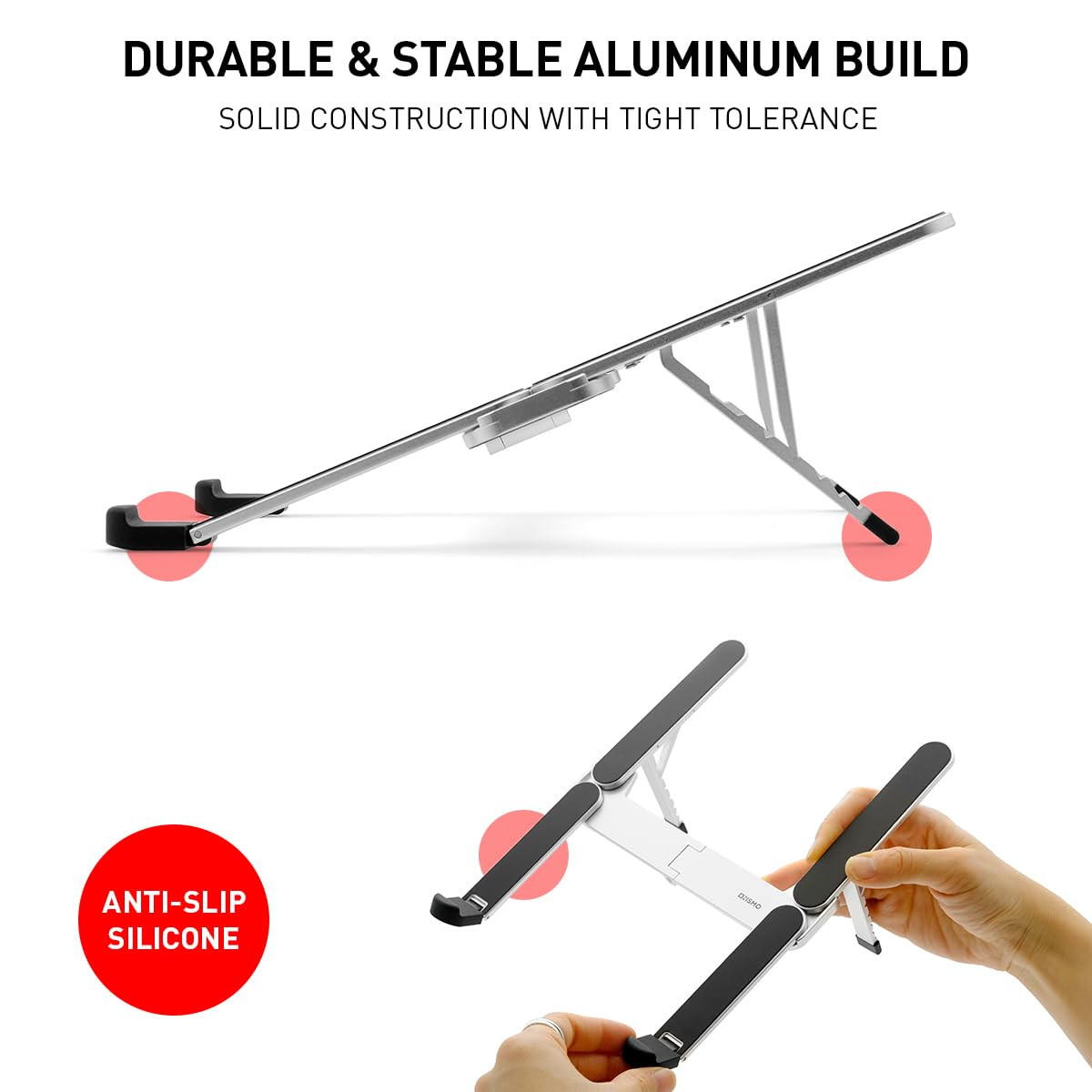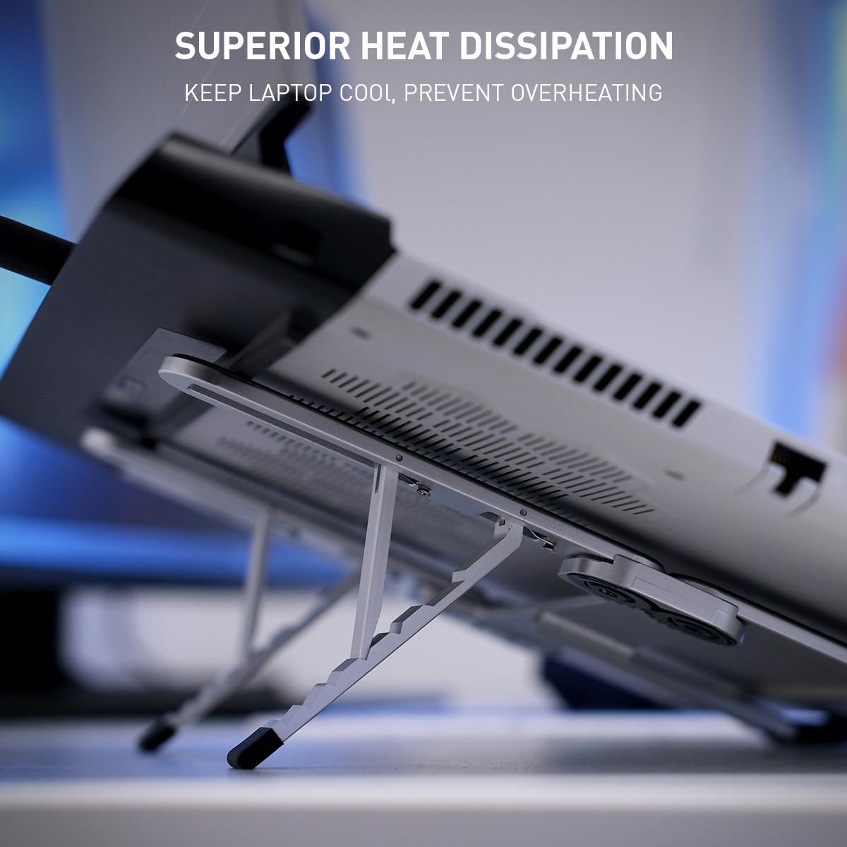 Elevate your laptop experience with the Laptop Stand. This foldable and portable stand is crafted from durable aluminum for ultimate stability and longevity. Featuring a 5-level adjustable height, it helps improve posture, reducing neck fatigue, back pain, and eye strain, making it perfect for home, office, and outdoor use. The stand’s ergonomic design enhances airflow and heat dissipation, ensuring your laptop stays cool during intense gaming sessions. Compatible with 11”-16” laptops, it folds into a compact bar, weighing just 6.4oz, and comes with a soft carrying pouch for easy transport—ideal for business travelers and gamers alike. Foldable Design: Ultimate portability and convenience. Adjustable Heights: 5 levels for perfect eye level. Durable Aluminum: Strong, stable, and lightweight. Heat Dissipation: Improved cooling for gaming and prolonged use. Non-Slip Protection: Secure grip with anti-slip silicone pads. Compact & Lightweight: Weighs only 6.4oz with a compact foldable design. Upgrade your workstation with the Laptop Stand today! 【ADJUSTABLE & ERGONOMIC DESIGN】Customize your laptop’s height with 5-level adjustments to achieve the perfect eye level, reducing neck fatigue, back pain, and eye strain for maximum comfort during long working hours. 【ULTRA-PORTABLE & FOLDABLE】 Weighing only 6.4oz, the Laptop Stand quickly folds into a compact bar (5” x 1.7” x 0.75”), making it easy to carry in the included soft pouch—perfect for business travelers and gamers on the go. 【ENHANCED HEAT DISSIPATION】 The forward-tilt angle and open structure promote superior ventilation and airflow, keeping your laptop cool and running efficiently, especially during intense gaming or heavy use. 【WIDE DEVICE COMPATIBILITY】 Designed to support laptops ranging from 11” to 16”, this versatile stand is ideal for various devices, ensuring a seamless experience whether you’re at home, in the office, or outdoors. 【PREMIIUM ALUMINIUM CONSTRUCTION】 Crafted from high-quality aluminum, this stand ensures durability and stability, while large anti-slip silicone pads securely hold your laptop, preventing scratches and slips.
