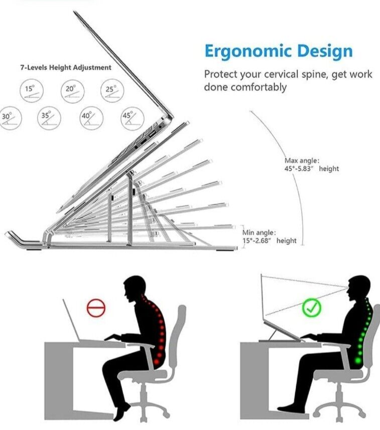 New Tilts From 2 To 5 Inches High ~~ Goes From 1.5 To 7.5 Inches Across Can Hold 10 in To 15 in Laptop Please Consider The Pictures As Part Of The Description I Do Combine Shipping If Buying More Than One Item ~~ Please Wait For Invoice Before Paying To Get Adjusted Shipping Amount & Total I Ship Internationally Through The Ebay Global Shipping Program Only! Buyers Are Responsible For All Import Fees
