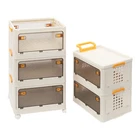 $ 13.43-Tier Foldable Storage Cabinet with Wheels Collapsible Organizer Bin