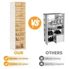 【Premium Quality】shoe organizer is made of high-quality PP+PS material, which is strong, durable and environmentally friendly. The thickened folding support frame provides strong load-bearing capacity, is safe and reliable, and allows you to easily store and organize your shoes and other items 【Transparent shoe boxes are stackable】The transparent magnetic door makes it easy to take out shoes, while preventing dust and ensuring the inside of the shoe storage rack room is clean and tidy. The vent design promotes air circulation and prevents odors. Stackable design, easy to fold up for storage or portability, suitable for a variety of scenarios, no matter your bedroom, living room, study, attic, etc., this foldable shoe box can meet your needs 【Quick Installation Design】shoe storage box is designed for quick and easy installation. With its one-piece folding design, it only takes 3-5 minutes to install, greatly saving you time and energy 【Multi-functional Storage】The foldable shoe organizer Box is not limited to storing shoes. It is designed to meet a variety of storage needs. It not only accommodates various types of men's and women's shoes, including sneakers, flat shoes, high heels, etc. Additionally, it can be used to store and organize everyday items such as books, toys, cosmetics, snacks, toiletries and collectibles, and its versatile design and functionality make it a great addition to any home 【Customer Service】is committed to providing customers with the highest quality products and the best customer experience. If there are any problems with the shoe box you received, please feel free to contact us. We will serve you wholeheartedly