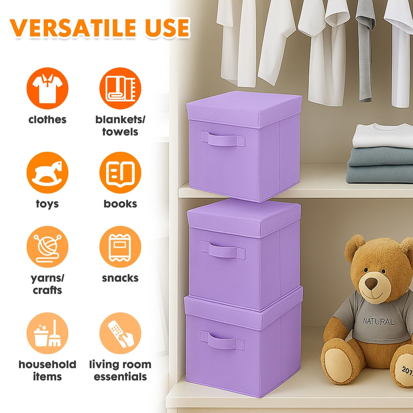 Store And Organize: These storage cubes suitable for storing and organizing household small things such as clothes, toys, socks and underwear in home or office, especially in bookcase, desk, closet or shelving rack, providing you extra storage space For Any Room And Versatile: These cloth storage bins use in the kid's room, family room, laundry area, closet, storage room, etc. Sit on the floor, in the closet, bookcase, desk, shelving area, and cubicle, available in a variety of attractive colors Foldable Storage Cube: These storage organizer are foldable, sturdy, yet lightweight storage bins can easily be packed away when they’re not in use. Each foldable storage cube has durable dual handles and lid for easy carry, handle and stack Stackable Storage Cube with Lid: The storage cube with a lid provides dust-proof and moisture-resistant protection for your clothes, ensuring they remain clean. Its stackable design maximizes space utilization through vertical organization, while the lid keeps your space neat and clutter-free. The lid adds an extra layer of security, preventing accidental spills or damage to your stored items. Specification: The cloth storage bins are made of heavy-duty non-woven fabric material with extra cardboard support, lid and dual handles. Offers durability, structural stability, and a touch of elegance for convenient and stylish organization. Complements cube storage organizer shelves. Size: 10.5 X 10.5 X 11 INCH Storage cube, storage bins, storage organizer, Clothes Storage Box, Clothing Organizer Container, Fabric Storage Box, Fabric Storage Box, Closet Storage Boxes, Non-woven Fabric Clothes Organizer with Handles, toys Clothes Storage Store And Organize: These storage cubes suitable for storing and organizing household small things such as clothes, toys, socks and underwear in home or office, especially in bookcase, desk, closet or shelving rack, providing you extra storage space For Any Room And Versatile: These cloth storage bins use in the kid's room, family room, laundry area, closet, storage room, etc. Sit on the floor, in the closet, bookcase, desk, shelving area, and cubicle, available in a variety of attractive colors Foldable Storage Cube: These storage organizer are foldable, sturdy, yet lightweight storage bins can easily be packed away when they’re not in use. Each foldable storage cube has durable dual handles and lid for easy carry, handle and stack Stackable Storage Cube with Lid: The storage cube with a lid provides dust-proof and moisture-resistant protection for your clothes, ensuring they remain clean. Its stackable design maximizes space utilization through vertical organization, while the lid keeps your space neat and clutter-free. The lid adds an extra layer of security, preventing accidental spills or damage to your stored items Specification: The cloth storage bins are made of heavy-duty non-woven fabric material with extra cardboard support, lid and dual handles. Offers durability, structural stability, and a touch of elegance for convenient and stylish organization. Complements cube storage organizer shelves. Size: 10.5 X 10.5 X 11 INCH