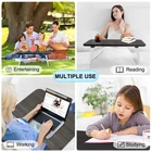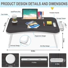 OFFICE HELPERS: We have included 2 desk assistant for you. One is the computer stand, which can be used to cool the heat, but also adjust the Angle of the screen to relieve neck fatigue, and can hold up to 15.6 inches of laptop; The other is the phone rack, when you put the computer on the desk, you can keep your phone parallel to the computer MULTIPLE FUNCTIONS: The foldable laptop desk has a slot for phones, tablets, and more. The laptop bed desk tray also has a cup holder. The laptop desk for bed has a storage drawer under it for pencils, rulers and other gadgets. There are brackets on each leg to make the table more stable in various places PERFECT SIZE & PORTABILITY: Our laptop lap desk measures 23.62 "(L)x15.74" (W)x11.02 "(H), can hold 44.1 pounds. This folding table is only 1.8 inches thick and can be placed in any nook or cranny. This foldable laptop desk has a handle that allows you to easily carry it anywhere MULTI-SCENARIO APPLICATION: This laptop bed desk is suitable for use on a bed or sofa, and it is also very convenient and takes up no space when you go out for a picnic or in the trunk of your car SUITABLE GIFT & AFTER-SALES SERVICE: Our foldable lap desk is perfect for family or child gifts. If you encounter any product problems, please feel free to contact us, we will solve the problem for you in time
