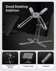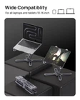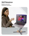 【360°Rotation】Unlock seamless collaboration with our desk laptop stand featuring a 360° rotatable axis. Effortlessly share screens across rooms or desks. Perfect for productive idea sessions over video calls. 【Ergonomic Design】Laptop stand easily lifts your laptop to a higher level.It elevates your laptop to eye level to fix your posture and reduce neck and back stiffness. Achieve a more comfortable work position to boost productivity and creativity. 【Foldable & Portable】adjustable laptop holder is designed to be used anywhere. Just folding this laptop stand for desk, then you can carry it to coffee shops, your office, or wherever you go, a convenient and compact solution for any workspace. 【Heat Dissipation】The Unique X-shape design provides good ventilation and airflow to prevent your laptop from overheating. In addition, its 100% aluminum alloy body also helps to diffuse heat to cool down your laptop,extending your device’s lifespan. 【Strong Bearing Force】Made of thick aluminum alloy, Laptop stand supports up to 22 lbs (10 kg), ensuring stability with anti-slip rubber pads. It holds your laptop securely without wobbling or slipping on your desk. 【Wide Compatibility】laptop stand for desk Compatible with 11-16 inch laptops, including MacBook, Surface, Dell, HP, and more. Fully foldable, ideal for office, podiums, laptop risers, and desktop stands, maximizing versatility and convenience.