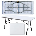 Introducing the plastic folding tables - the perfect outdoor companion for all your party and event needs! This foldable, 6-foot long table is designed with convenience and versatility in mind. Our folding table features a sturdy and durable construction, with a powder-coated steel frame that provides reliable support. The 6-foot length ensures ample space for all your guests, while its foldable design allows for easy transportation and storage. No assembly required, simply unfold and set up your table in seconds! With its compact size and comfortable handle, this folding table is perfect for outdoor gatherings, picnics, barbecues, and more. Its lightweight and portable nature make it a breeze to take it anywhere you go. The collapsible tables are built to last, with a moisture-proof and durable plastic material that can withstand various weather conditions. The non-slip rubber feet ensure stability and prevent any accidental slips or damage to your floors. Whether it's for a party, a camping trip, or simply as an additional table for your outdoor activities, this foldable table is a must-have. Its rectangular shape provides ample space for food, drinks, and other essentials. Don't miss out on this opportunity to enhance your outdoor experience with the Foldable Tables. Order yours today and enjoy hassle-free setup, portability, and durability all in one! EASY TO STORE AND CARRY: The Folding Table is the perfect solution for outdoor parties and events. The large folding table comes with convenient side-locking handles, allowing you to easily carry and transport it anywhere. STURDY AND DURABLE: Our folding table features a sturdy steel frame and non-slip rubber feet for strong support and a weight capacity of up to 300 lbs. Powder-coated legs ensure long-lasting durability, making the table perfect for any outdoor environment. SPACIOUS AND PRACTICAL: Measuring 70.87 "D x 29.13 "W x 29.13 "H, this folding table provides plenty of space for 6-7 adults. Its sleek, minimalist design adds a touch of elegance to any setting. EASY INSTALLATION: No assembly required! Simply unfold the table and lock the legs into place for a secure and stable tabletop. Rectangular design provides plenty of space for dining, playing games or displaying party decorations. WEATHER-PROOF AND EASY TO CLEAN: The surface of this outdoor folding table is made of durable plastic that is moisture-resistant, ensuring its longevity even in unpredictable weather conditions. Cleaning is also very easy, just wipe the surface with a damp cloth.