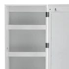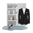 Specification Color: White Material: MDF, Glass, Iron Process: Cutting, Grooving, Punching, Nailing, Gluing, CNC Machining, Spray Painting, etc. Shape: Rectangular Style: Modern, Minimalist Door Style: Flat Panel Assembly Required: Yes Mounting Type: Door/Wall Mount Rotation Angle: Within 180° Load-bearing Capacity: 10kg/22 lbs Plate Thickness: 12mm/0.5inch Ironing Board Size: 83.06*31.5*2cm/32.7*12.4*0.8inch Product Size: 35.56*20.57*95.25cm/14*8.1*37.5inch Package Size: 102*44.5*27cm/40.15*17.5*10.6inch Gross Weight: 15.05kg/33.18 lbs Net Weight: 12.8kg/28.2 lbs Package Included 1* Ironing Board Cabinet 1* English Assembly Instruction All Accessories for Assembly welcome Wall Mount Ironing Board Cabinet, Built-in Swivel Ironing Board Foldable with Storage, Wall Hanging with Mirror, White Description Not only does a traditional iron or ironing board cost you more money but trying to install it in your room will take up a lot of space. You can try this beautiful and practical ironing board cabinet. It has a minimalist design, a foldable ironing board, a large storage space, and high quality, which easily blends into different interior styles and is suitable for use in various scenarios such as homes, hotels, and apartments. Key Features Large Capacity: 4 spacious storage shelves and 2 hanging hooks can accommodate most accessories and small irons, as well as provide a convenient space for hanging clothes, keeping your room clean and tidy. Swivel Function: Swiveling ironing board can be rotated almost 180° for right and left-handed ironing, making ironing clothes easier and more convenient. You just adjust the bolts under the ironing board and tighten/loosen the rotation. Selected Materials: High-quality MDF, iron ironing board, and nickel-plated hooks make this cabinet sturdy, corrosion-resistant, and anti-rust. Multifunctional Cabinet: Not only is it a hanging ironing cabinet, but it can also be used as a dressing cabinet, making it easy to see the effect of wearing clothes directly, saving your time and costs. Sturdy Structure: The triangle bracket at the bottom of the cabinet ensures the cabinet is attached to the wall stable, and the dependable turntable under the ironing board can support up to 22 lbs. Exquisite Workmanship: With cutting, grooving, punching, nailing, gluing, CNC machining, spray painting, baking varnish, and other processes, this product is strong and not easy to deform. Powerful Protective Cloth Cover: The anti-ironing protective cloth cover made of foam liner and breathable cotton is resistant to high temperature, has a good heat dissipation effect, promotes faster wrinkle release, provides a smooth ironing effect. Space-saving: With the foldable ironing board hidden in the cabinet and wall-mounted installation design, this ironing board cabinet saves space, which is ideal for ironing in small spaces. Modern and Simple: Delicate white wall-mounted cabinet body and the premium glass mirror can adapt to any type of room and create the visual effect of a wider space. Simple&Flexible Installation: With the fully-assembled ironing board cabinet, pre-drilled hanging holes, complete hardware, and a detailed installation manual, you simply measure the distance on the wall, drill two holes, and mount it vertically on the wall. Additionally, it can be installed high or low according to your own needs. Easy to Clean: With the smooth surface with spray painting treatment and detachable cloth cover, you only need to wipe it with a wet cloth and clean the cover with a washer/dryer. Easy to Use: Simply move the built-in lever to the open position, lower the board until it is level, and then you can start ironing, which is easy and ideal for quick ironing before work and school. Protective Package: To prevent the product from being damaged and bumped during transportation, we packed it with foam to protect your products to the maximum extent possible. Details Recessed Handle: The recessed handle on the edge of the door has an ergonomic size and a comfortable grip, allows for easy opening&closing, saves space, and ensures a smooth&attractive facade of the door when it is closed. Lock Latch: It keeps the ironing board secure when not in use without falling and improves user safety when you open the door. Sturdy Hinges: Four sturdy hinges keep your cabinet door balanced without tilting and allow for easy opening and closing without jamming Application It is used for ironing your clothes and storing folded clothes, bags, accessories, shoes, books, toys, and other small items in bedrooms, checkrooms, small houses, sewing rooms, bedrooms, small laundry rooms, pantry rooms, studio/tight apartments, RVs, and many other occasions. How to Use 1.Install the wall-mounted cabinet according to the assembly instruction. 2.Open the cabinet and fold down the ironing board. 3.Plug in your iron or garment steamer into a nearby outlet and let it heat up. 4.Iron or steam your garment as desired. 5.Place your garment and hang your clothes on the hanging hook with a hanger to set. Specification Color: White Material: MDF, Glass, Iron Process: Cutting, Grooving, Punching, Nailing, Gluing, CNC Machining, Spray Painting, etc. Shape: Rectangular Style: Modern, Minimalist Door Style: Flat Panel Assembly Required: Yes Mounting Type: Door/Wall Mount Rotation Angle: Within 180° Load-bearing Capacity: 10kg/22 lbs Plate Thickness: 12mm/0.5inch Ironing Board Size: 83.06*31.5*2cm/32.7*12.4*0.8inch Product Size: 35.56*20.57*95.25cm/14*8.1*37.5inch Package Size: 102*44.5*27cm/40.15*17.5*10.6inch Gross Weight: 15.05kg/33.18 lbs Net Weight: 12.8kg/28.2 lbs Package Included 1* Ironing Board Cabinet 1* English Assembly Instruction All Accessories for Assembly Notes 1.Please ensure a proper installation space without power lines or water pipes on your desired wall. When installing, please pay attention to the need for a 32.7" space between the wardrobe from side to side and the front of the wardrobe to facilitate the 