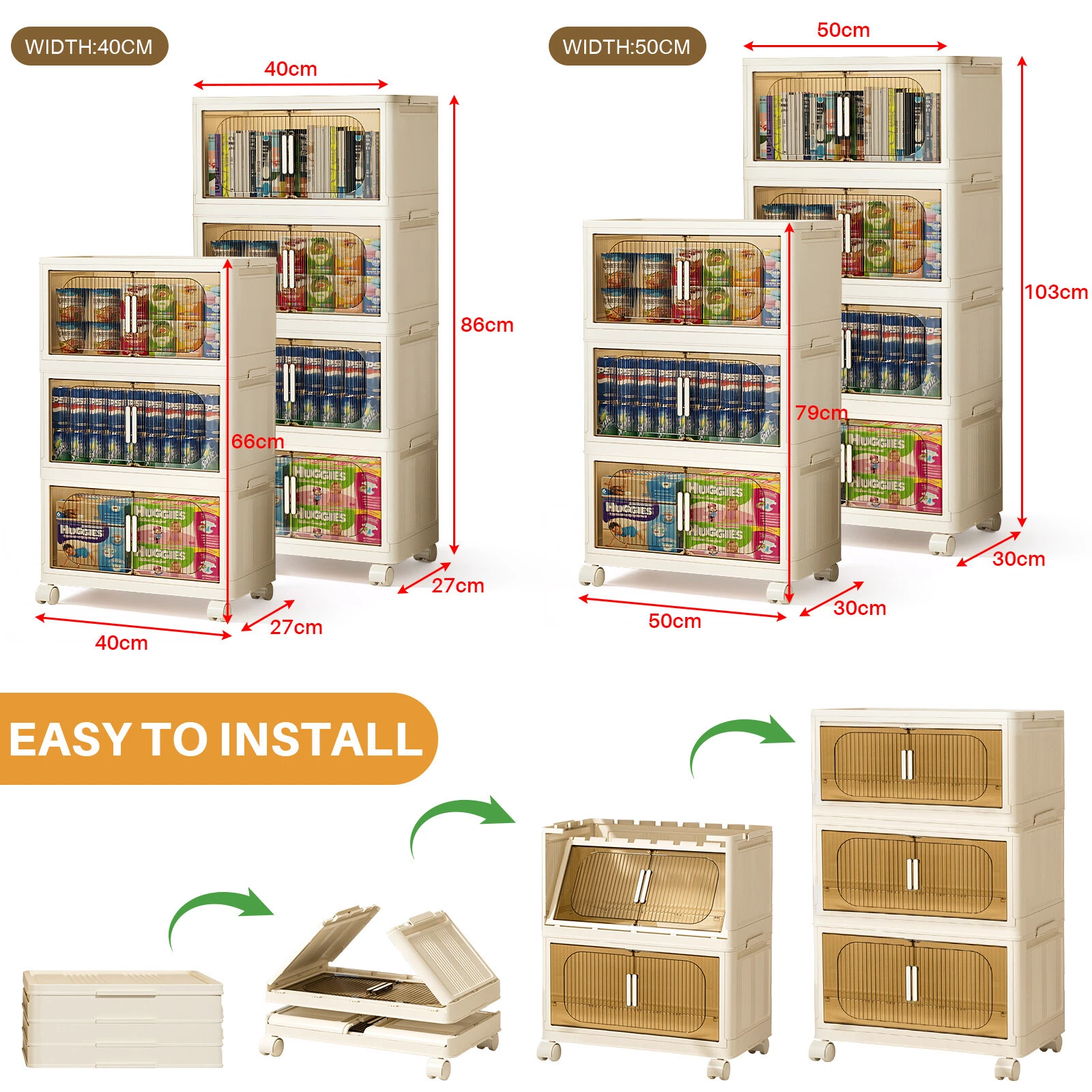 Description Similar Items Description Features: 【Multi-Functional Storage Solution】 Collapsible storage bins with lids offer a variety of storage options, perfect for organizing a variety of items at home or in the office. From clothes and toys to books and accessories, these storage bins offer a neat and efficient way to keep your space tidy. 【Stackable & Foldable】 The storage boxes are available in 3 ,4 layers, and the stackable design is designed to maximize space utilization. Each storage box has a foldable design, so it can be folded up and stored in the corner of the cabinet if not needed. Doesn't take up more space. 【High Quality Material】 The foldable storage box is made of high quality PP. The sturdy construction ensures they stay in good condition even when storing heavy items and can be used for a long time. The side of the box has a buckle design. Simply snap the top box upward to stack. It is more stable when stacked and not easy to shake. 【Mobile Storage Box】 We are equipped with 4 swivel wheels and 2 lockable wheels, allowing you to move it anywhere easily. Suitable for living room, bedroom, study room, kitchen. Even car trunks can store toys, books, clothes, snacks, medicines, and more. 【Two Opening Methods】 The front cover of each storage box is translucent, making it easy to find stored items without digging through the box. Can be opened on the side. This design is perfect for storing clothes, shoes, and other frequently used items. Each layer of this foldable plastic storage box comes with two handles, allowing you to easily open the door to retrieve or store items. The top cover is within reach, saving the hassle of searching for items and reducing dust. Specifications: Color: Beige Material: Plastic Size:(Only 1 top cover) 【3 Pack Wide: 40CM】 Size: 40cm*27*66cm/15.75*10.63*25.99in 【4 Pack Wide: 40CM】 Size: 40cm*27*86cm/15.75*10.63*33.89in 【3 Pack Wide: 50CM】 Size: 50cm*30*79cm/19.69*11.81*31.1in 【4 Pack Wide: 50CM】 Size: 50cm*30*103cm/19.69*11.81*40.55in Package Content:(Only 1 top cover) 1*Folding storage cabinet Note: 1.Please allow ±1/0.5'' error due to manual measurement. 2.When viewing the color of the product on your monitor, it may differ from the actual color of the item. Payment 1.We accept many methods of payment. 2.All major credit cards are accepted through secure payment processor PayPal. 3.We ship to your eBay or Paypal address. Please make sure your eBay and Paypal address is correct before you pay. Shipping 1.We ship to your eBay or Paypal. Please make sure your eBay and Paypal address is correct before you pay. 2.Items will be shipped within 1 business day when we received payment. 3.Delivery time depends on destination and other factors; 4.International buyers please note: a.Import duties, taxes and charges are not included in the item price or shipping charges. These charges are buyer’s responsibility. We will try our best to reduce the risk of the custom duties. b.Please check with your country's customs office to determine what these additional costs will be prior to Shipping: Free Shipping within the 48 States. We ship within the United States only. The term EXCLUDES the states of Alaska, Hawaii and all off-shore U.S. territories and possessions such as Puerto Rico, Guam and Virgin Islands. We do not ship to APO and FPO. Delivery Time: 3-8 business days (Varies by Destination) If you have any questions or problems with delivery, please contact us. Return & Warranty 30 DAY MONEY BACK SATISFACTION GUARANTEE | 360 DAY WARRANTY COVERS MANUFACTORY DEFECTS Returns are permitted and must be initiated by the buyer within 30 days from delivery date. In order to return an item, you must contact to request an Return Merchandise Authorization Number (RMA). No return package will be accepted without a valid RMA number. All products are covered by our warranty against defects. If an item proves to be defective, please contact to have the product repaired or replaced. Contact US Please send all correspondence through the eBay messaging system. Messages will be replied during business hours: 9AM to 6PM Pacific Time. Monday to Friday only (excluding Holidays). After hours messages will be replied on the next business day.