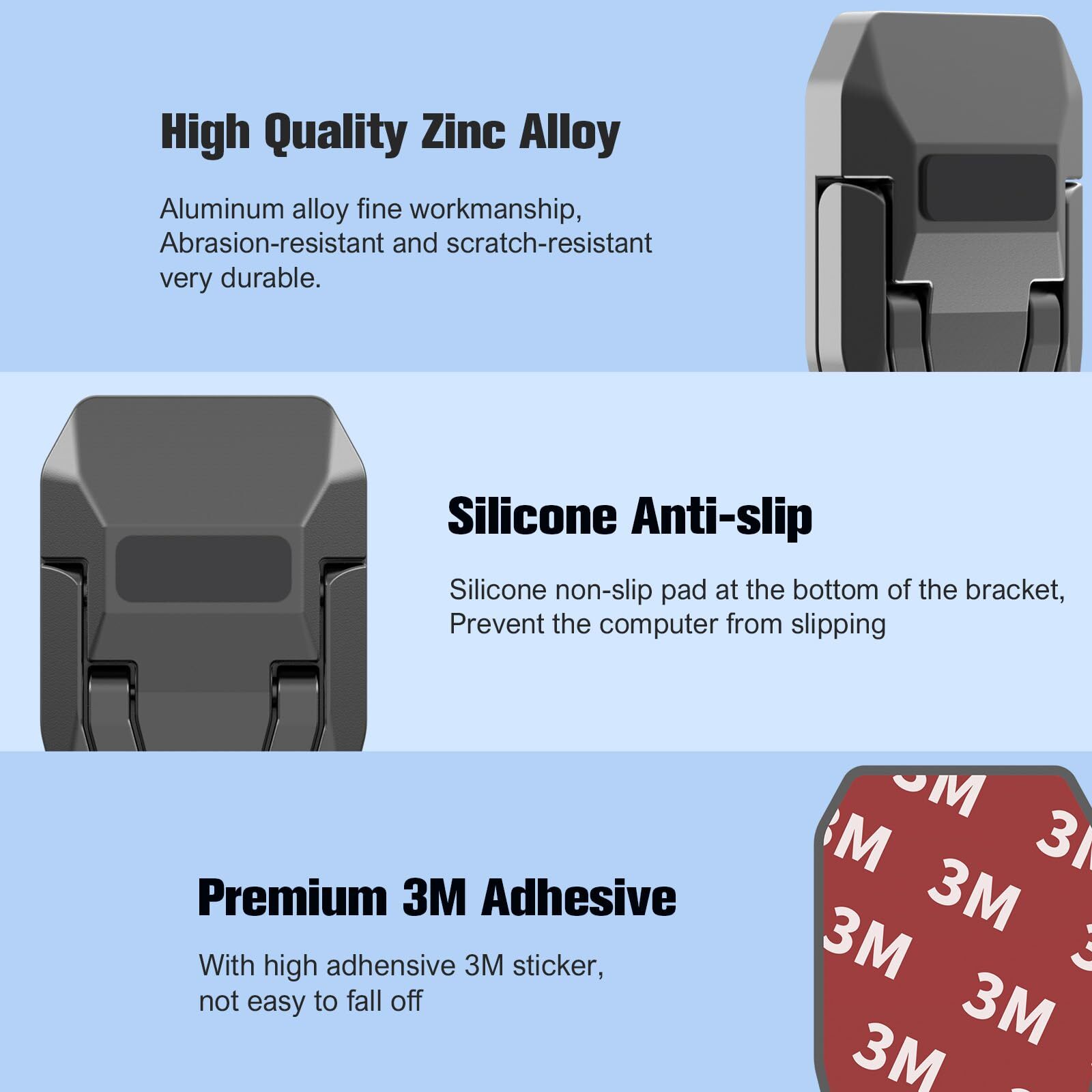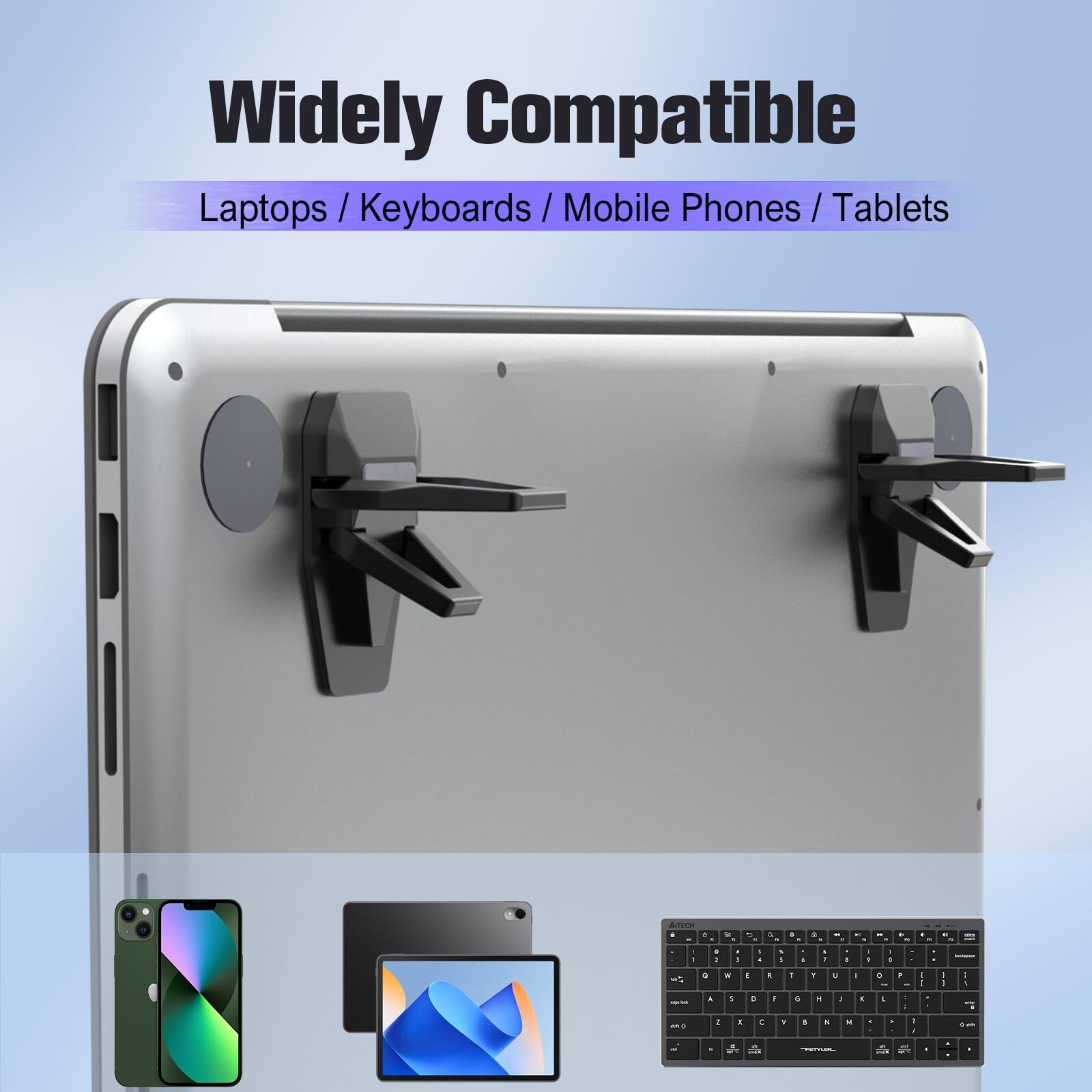eBay Product Listing Welcome to Our Store! Zinc Alloy Computer Keyboard Stand for Desk, Foldable Keyboard Riser with 2 Angle Adjustable, Self-Adhesive Invisible Laptop Stand for Desk, Mini Portable Keyboard Lift (2pcs, Black) Description Features 【FOLDABLE AND INVISIBLE DESIGN】The foldable laptop stand only have 10mm (0.39inches) when folded, easy to put into your notebook bag, portable when going out to office or business trip. 【FAST HEAT DISSPATION】:The computer stand for laptop can raise the height of the laptop without blocking the air outlet, it increases air circulation to prevent the laptop from overheating. 【TWO ANGLE ADJUSTABLE】: The computer keyboard stand can adjust with different angle, suitable for different heights of requirements, protect your neck and shoulders from pain. 【PREMIUM ZINC ALLOY MATERIAL】: The laptop stand for desk is made of high quality zinc alloy material, which is strong enough to support the weight of the laptop, sturdy and durable. 【WIDELY COMPATIBLE】:Our laptop stand and keyboard lift compatibility with most size of laptops and keyboards, can adjust the width freely. it can also be widely used for laptop, keyboard, tablet and mobile phone. Return Policy All our products come with a 30-Day Return Policy. If you are not 100% satisfied, please contact us to arrange a return or replacement. We offer free shipping on returns and will provide a prepaid return label. To initiate a return, please contact our customer service team through eBay messaging. We will guide you through the process and ensure your issue is resolved promptly. Shipping Information We ship to the address provided on eBay. Please ensure your address is correct. Delivery usually takes 2-4 business days. If there are any delays, please allow an additional 1-2 business days. We use reliable shipping services such as UPS, FedEx, and USPS. We only ship within the contiguous United States and do not offer local pickups. Shipping is free on all orders, and tracking information will be provided once your order has been shipped. If you have any questions about shipping, please contact us. Contact Us If you have any questions, please contact us via eBay message. We respond within 1 business day. Our customer service team is here to assist you with any inquiries or issues you may have. Customer satisfaction is our top priority, and we are committed to providing you with the best shopping experience. Please do not hesitate to reach out to us. About Us We are committed to providing high-quality products, competitive prices, and excellent customer service. Our goal is to make sure you are completely satisfied with your purchase. Thank you for your business and the opportunity to serve you. We look forward to providing you with the best possible shopping experience.