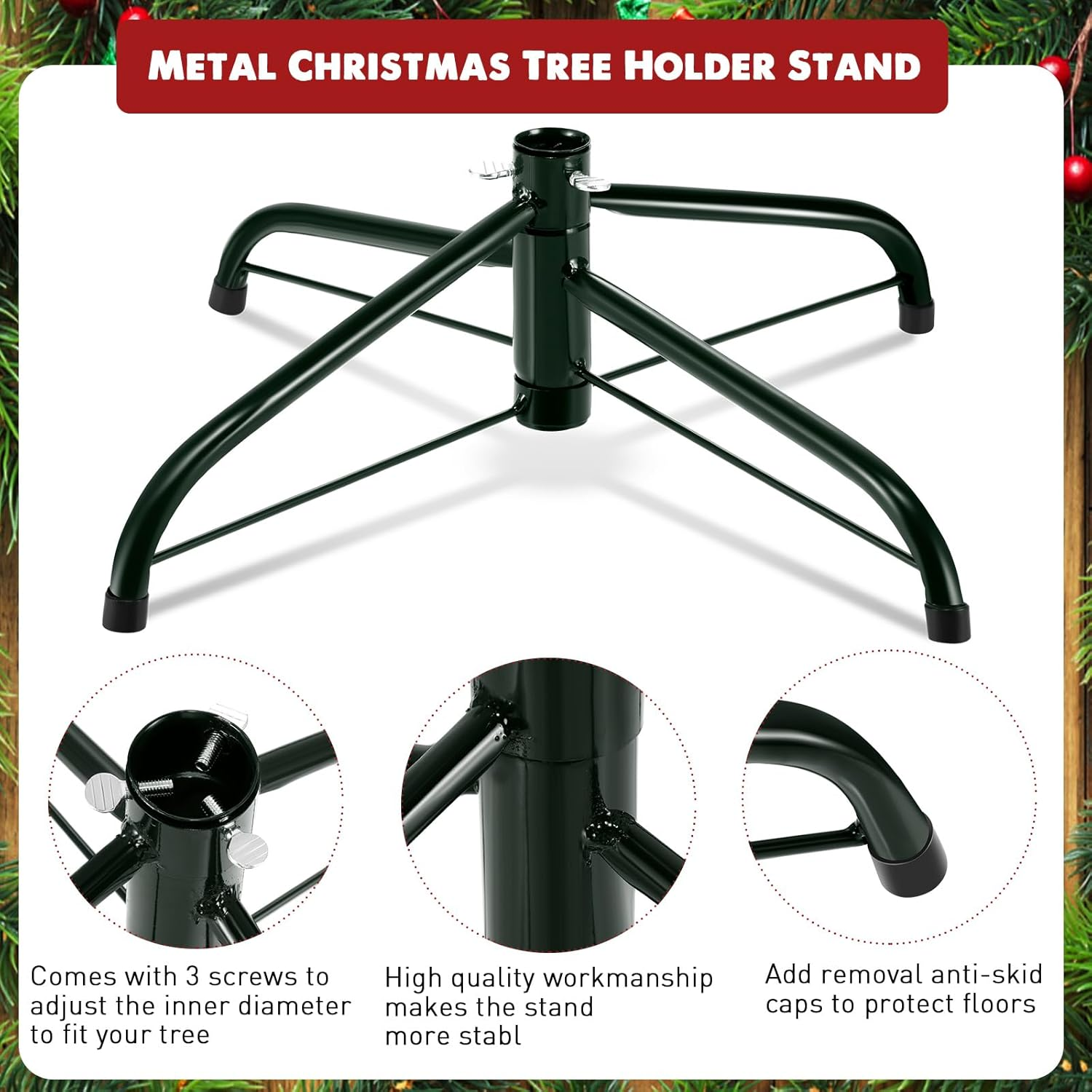 Store New Arrivals Add to Favorite View Feedback Contact Folding Metal Christmas Tree Stand Universal Artificial Xmas Tree Base Replacement Holder for Christmas(Green,16 Inch) Description Item model number -Tree Stand-09 Item dimensions L x W x H 15.75 x 15.75 x 4.92 inches Assembly Required Yes Batteries required No Product Dimensions 15.75 x 15.75 x 4.92 inches Material Metal Item Weight 11.3 ounces Color Green Base Type Stand Included Components Christmas tree stand Special Feature Foldable Size 16 Inch What You Are Provided: package includes 1 piece of metal Christmas tree stand with 3 thumbscrews for tightening the tree, the adjustable size to meet your Christmas home and party decoration needs, and you can also share with your family and neighbors Know More About Size: the Christmas tree holder measures approx. 40 x 40 x 12.5 cm/ 16 x 16 x 4.9 inches, and the pole is about 2.2 cm/ 0.87 inch in diameter, please check the size detail before purchasing to choose the right size according to your tree trunk diameter Sturdy and Long Lasting: our adjustable Christmas tree stand is made of quality metal material, with green painted, well welded, reliable, sturdy and long lasting, not easy to break, fade, rust or deform, so you can use them for a long time Practical and Convenient Design: the artificial tree stand base is designed with folding legs, folded flat for easy storage and space saving, you can unfold the stand when in use, put the Christmas tree into the center of the pole tube and twist the screws to firmly fix the tree Wide Range of Use: Christmas tree stands of 16 inch is generally suitable for Christmas trees below 4.9ft, which can be applied for winter parties, Christmas home decorations, to bring a strong holiday atmosphere to your home Product description ABOUT US We offer the best prices around on high quality products. Our E-store includes media such as books, movies, music and games while offering electronics, toys, sporting apparel, clothing, tools, general home, garden items and more. SHIPPING We are always working hard to ensure your package arrives as soon as possible. Please understand that some factors like weather, high postal traffic, and the performance of shipping companies are outside of our control. We offer free shipping to the lower 48 states and ship within 2 business days of payment, usually sooner. We do not accept P.O. Boxes. Please provide a physical address. For shipping outside of the continental USA, we only use eBay's Global Shipping Program.The item is shipped to KY and then sent to the rest of the world. International customers are responsible for all duties and taxes. Continue to check out in order to calculate costs for shipping the item to your country. Messages regarding eBay's Global Shipping Program MUST be directed at eBay EXCLUSIVELY. RETURNS We offer a 30-Day Return Policy on items which you are not completely satisfied with. You have the option for a full-refund or an exchange of the item. No returns are available on items shipped outside of the USA. PAYMENT We accept PayPal. CONTACT US This page content is yet to come Please ad us to your favorite seller and visit again later Thank You CUSTOMER SATISFACTION We try our very best to make sure every customer is completely satisfied. If there's a problem, message us! We're happy to help. WE ACCEPT Copyright © 2021 AutoDS. | All Rights Reserved