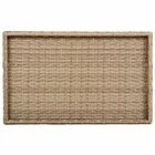 Size: Medium This Folding Tray Table comes in a nice beige that fits in everywhere, be it patios or living rooms. It's a fab option for serving meals, snacks, or drinks, and it's lightweight and easy to carry, making it super versatile for home or outdoor gatherings. Durable Materials: Made from UV resistant poly rattan and strong powder-coated steel, the table stands up to all kinds of weather, so it lasts longer. Adjustable Features: The foldable design makes it easy to set up and put away, which is a big win when in use. Convenient Storage: When it's not in use, the table folds flat, so it's easy to tuck away and saves space. Elegant Finish: The textured surface adds a touch of style, giving your decor a lift wherever it is. Multi-functional Use: Great for social gatherings, moving drinks around, or just as a decorative touch in your home. Color: Beige Shape: Rectangular Material: Synthetic Poly Rattan Finish: Textured Indoor/Outdoor: Indoor / Outdoor Cover Included: No Room: Garden and terrace Dimensions: 15.7 in x 25.6 in x 29.5 in (W x L x H) Surface Height: 2.4 in Leg Height: 29.5 in Weight: 8.55 lbs Delivery Contains: 1 Tray Table Assembly Required: Yes Recommended Number of People for Assembly: 1