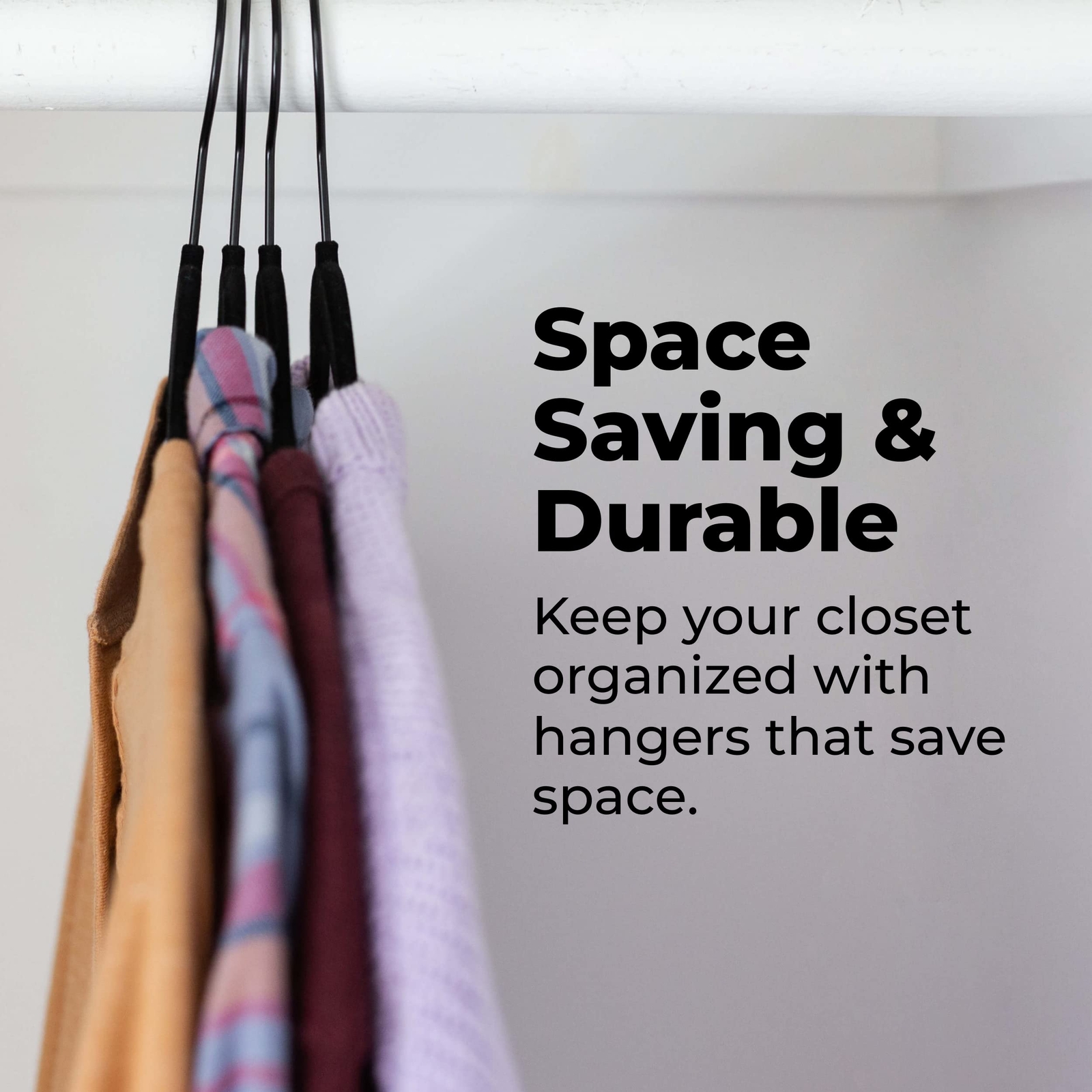 ULTRA THIN PADDED BLACK HANGERS: Black velvet with black swivel hook for a stylish one-color look. The felt hanger is sleek yet strong enough for a heavy winter coat or jacket. The shape maintains the integrity of your suits, shirts, skirts & pants. SPACE SAVING HANGER DESIGN: Get rid of those bulky plastic hangers that take up space and stretch out your clothes. Fontaines premium quality hangers allow you to organize your clothing to save space and ensures your wardrobe will last longer. SOFT BLACK VELVET: Don't worry about your silk tops, dress shirts, pants, or dresses falling easily like they do on plastic hangers. Our soft felt hanger organizers provide a nonslip solution so your clothing stay on the hanger, not on the floor. STRONG DURABLE BLACK METAL: Our 360 swivel hook can hold up to 10 pounds so you don't have to worry about broken hangers. It turns 360 degrees so you can easily store clothing in the direction you need, keeping your closet organized and neat. QUALITY GUARANTEE: We stand by the quality of all Fontaines Luxury Products and offer a 100% 30-day money-back guarantee. If for any reason you are unhappy with our luxury hangers, please get in touch so we can make it right. Enjoy and stay stylish!