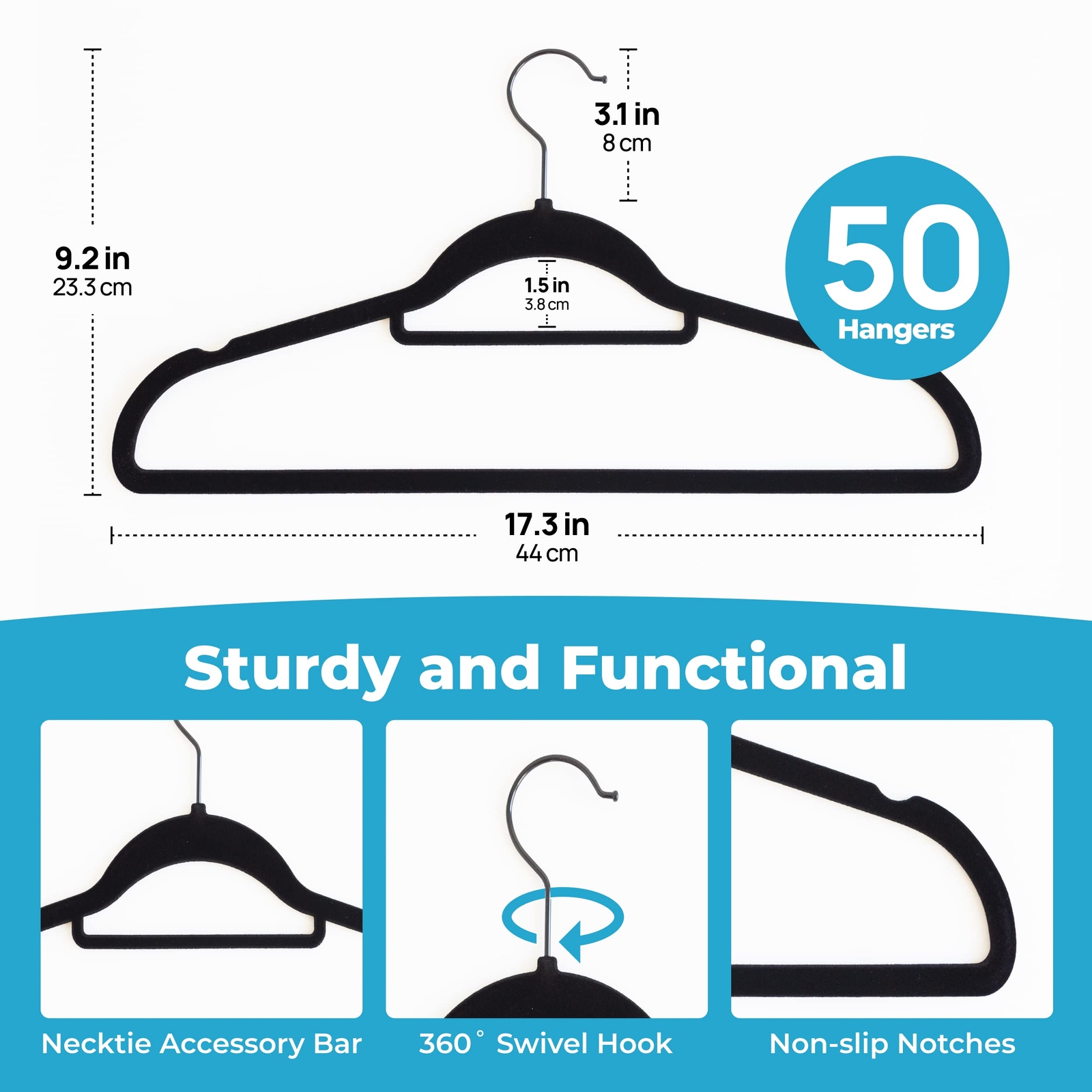 50 Velvet Hangers Non-Slip Swivel Hook Space Saving Felt Closet Organizers