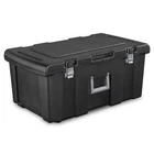Need a durable and portable storage solution for camping or moving? The Footlocker is the ideal multi-purpose solution! It offers ample storage capacity and quality construction that is ideal for storing camping gear, sporting equipment, and more. Pack it up and use it to move into a dorm room, and keep your items concealed in your living space for easy access. Smooth rolling wheels and ergonomic handles allow for easier transporting of heavy loads. Use the integrated side handles or the full grip bail style handle when carrying lighter loads. The footlocker utilizes metal hinges and latches and accepts a standard-size padlock for added security. The overall assembled dimensions of this item are 31 1/4" L x 17 5/8" W x 13 7/8" H. Plastic Footlocker Adult Black Outside Dimensions: 31 1/4" x 17 5/8" x 13 7/8" Interior Dimensions at bottom: 26 1/2" x 13 3/4" x 12 3/8" Durable construction makes it the ideal solution for storing items in the garage, attic or basement or for transporting to camp or college Choose between the integrated handles on the sides of the Footlocker or the full grip bail handle when transporting Wheels allow Footlocker to be easily moved without having to carry it Features metal hinges and latches and accepts a standard size padlock for added security BPA-free and phthalate-free