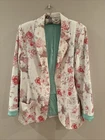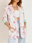 Add a pop of color to your wardrobe with this beautiful blue floral denim blazer from For Love and Lemons. This blazer features a stretchy fabric that ensures a comfortable fit, making it perfect for any occasion. The oversized size XS fits more like a medium, making it a versatile addition to any wardrobe. The blazer is made with high-quality cotton denim material that is both durable and stylish. The colorful floral pattern adds a touch of elegance to the blazer, making it perfect for any formal or semi-formal occasion. The blazer also features a basic jacket style and a denim fabric type that adds a unique and trendy touch to your outfit.