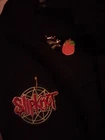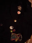 Denim, decorated jacket with pins and patches. MCR, hardcore, punk, emo jacket. Dark/ black. Used, a little messy diy. Size medium, technically women's but pretty unisex.