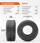 Halberd Halberd tires are produced in world renowned factory that specializes in manufacturing customized tires for leading international ATV/UTV brands. With a diverse product range covering ATV/UTV, Lawn & Garden, Trailer, Golf Cart and Go-Kart tires, Halberd is committed to providing high-quality and affordable tires to customers around the world. 20x8.00x8 Tire Specification: TT/TL: TL Tire Type: Lawn & Garden Tire Speed Rating: A3 Tire Load Range: B Section Width: 8'' Rim Width:7 Overall Diameter: 20'' Tread Depth: 5.5 Max PSI: 22 Load Index(lbs): 965 Features: Turf Friendly Pattern Design Heavy Duty 4-Ply Bias Rating Self-cleaning Function Superb Traction & Control Easy to install Replacement for many kinds of lawn mower,garden tractor ect. Package Include: Four 20X8.00-8 Tires