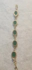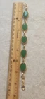 Franklin MINT GOLD FILLED CHAIN NOT ORIGINAL TO PENDENT HAS GOLD TONE JUMP RING THAT CAN BE REMOVED BEADED GREEN NECKLACE HAS A REAL 4 LEAF CLOVER HAS BEEN REPAIRED WITH SILVERTONE JUMP RING PLASTIC GREEN BRACELET HAS BEEN REPAIRED WITH GOLD TONE JUMP RINGS AND LOBSTER CLASP JEWLERY IS PHOTOGRAPHED NEXT RULER FOR MEASUREMENT