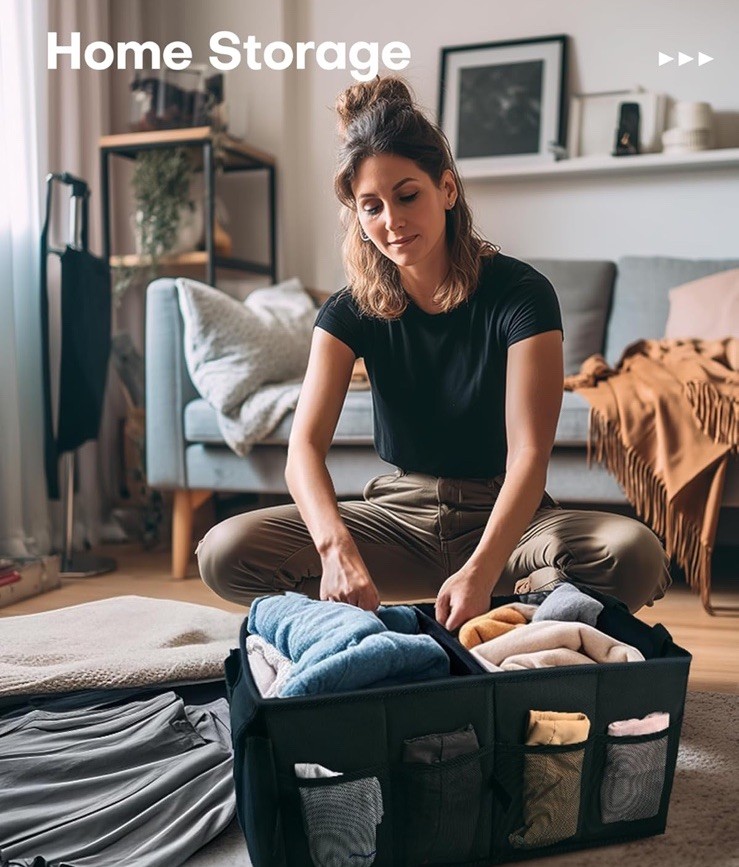 The HOTOR Trunk Organizer is a versatile and convenient storage solution for both cars and homes. Its foldable design allows for easy storage when not in use, making it a space-saving option for organizing items in the trunk of your car or closet at home. This organizer is perfect for keeping belongings neat and tidy, whether you're on the road or simply looking to declutter your living space.
