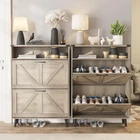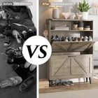 44.49" Freestanding Shoe Organizer with Open Storage, Shoe Cabinet for Entryway 【Sturdy Construction】 --Crafted from high-quality Particle Board, this shoe cabinet ensures structural stability and weight-bearing capacity. The simple and elegant black handle adds a touch of style and convenience, enhancing the ease of opening the drawers. Supported by four black metal legs with feet, this cabinet protects floors from scratches and guarantees stability, ideal for heavy loads. 【Safe & Reliable】 --Rest assured in the quality and safety of this slim shoe cabinet, equipped with an anti-toppling device to secure the cabinet to the wall and protect children from potential hazards. The cabinet's sturdy construction and safety features ensure a reliable storage solution for your shoes and peace of mind for your family. 【Flip Drawers Shoe Cabinet】 --The contemporary freestanding shoe cabinet adopts the space-saving design of flip drawers, which are effortless to open and close. It can be positioned in confined spaces, keeping your shoes dust-free and safeguarding them from being bitten by pets and bugs. Perfect for placing in the entryway, hallway, living room, or porch, provides a neat looking in your home and space saving. 【Large Capacity】 --Our drawers shoe cabinet has two flip drawers and 2 tiers inside each drawer,It features a removable divider in each compartment, you can choose to keep or remove the panel according to the size or style of your shoes. The roomy top surface and the open top compartment are ideal for accessories, keys, wallet, etc., facilitating easier access to items. 【Easy Assembly】 --Experience hassle-free assembly with all parts, hardware, and clear instructions included for easy setup. Each part is labeled for quick identification, simplifying the assembly process. The shoe cabinet is easy to clean with a damp cloth, requiring minimal maintenance. Ideal for entryways, hallways, living rooms, or porches. Payment Delivery Returns Feedback We accept Payoneer only. All major credit cards are accepted through secure payment processor PayPal. Payment must be received within 7 business days of auction closing. If you have bought multiple items from me, you can send me one payment for all the items instead of paying for them individually. When you click the Pay Now button, eBay will automatically determine if there are other items you have won or purchased from me and will combine them for your review. NOTE: Import duties, taxes and chargers are not included in the item price or shipping charges. These charges are the buyer's responsibility. Please check with your country's customs office to determine what these additional costs will be prior to bidding buying. 1. We will delivery out at the handing time when we receive the payment. 2. The delivery time is 3-5 business days to US by usually time.The parcel maybe delay 1-2day of the weekend.Due to the bad weather,Holidays,Hot Season ect.the parcel maybe delay,If you have any problems,mssage us,we will try our best to solve it. 3. We ship to your eBay address. Please make sure your eBay address is correct before you pay. 4. If you want to change the shipping address,message us before our send out. 5. We cannot deliver your order if your state is PR. 1. If you donot receive the items at the delivery time,the parcel has broken/missing,Please message us before you open case/return,we will try our best to solve it. 2. We offer a 30 day return policy from checkout winning date. 3. An RMA number is required for all returns. Message us for return instructions. Items Returned without a RMA number will not be processed. 4. Items defective upon receipt must be packaged in their retail packaging as if new and returned with a detailed description of the problem. 5. Return shipping fees are not refundable.We reserve the right to decline any returns if the above guidelines are not followed. If you are not satisfied with the item for any reason, please do not quick to leave negative/neutral feedback even open request and case without any communication with us. We devote ourselves making EVERY CUSTOMER in 100% Satisfactory and resolve any problem. Thank you for your understanding and recognition,we are always leave positive feedback to all our customers. About Reply: All replies will be sent to your email box, if you do not get response within 24 hours (Sat. & Sun. excluded) please check your eBay My Messages in case that our emails will be filtered automatically by your settings.
