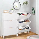 【Ample Storage Space】 The size of this shoe cabinet is 25.59"W x 9.45"D x 47.63"H. Our Shoe Storage Cabinet features 3 flip drawers. The compartment in the middle of each drawer can be adjusted or removed to fit different shoe types and increase storage space. The spacious top surface of the entryway shoe storage are ideal for photo frames, keys, wallets, and other small items. There are 4.72in height on the bottom, which can store more shoes.The sweeping robot can also pass and clean normally. 【Metal Shoe Storage Organizer】 This shoe storage organizer for entryway is made of metal. Compared with ordinary wooden shoe cabinets, our shoe storage cabinet will not be damp and deformedand. It also doesn't have a pungent smell. The material of shoe cabinet is recyclable and more environmentally friendly. The Metal shoe organizer is also easy to clean with a damp cloth. 【Floor-Freestanding Or Wall-Mounted】 The bottom feet are removable and can be used as needed. There are four mounting holes on the back of the shoe storage, please fix the shoe cabinet to the wall to add more security. 【Multi-scenario Use】 This freestanding shoe cabinet can be perfectly matched with your home space. The Shoe organizer cabinet is very suitable for entryways, hallways, living rooms, bedroom, cloakroom. 【Easy to Assemble & Good After-sales Services】 The entryway shoe storage cabinet comes with detailed instructions, and all parts are attached with digital labels to help you install quickly. If you have any product questions, please feel free to contact us, we will reply to you within 24 hours.