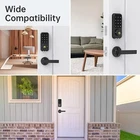 Options with "NO FP " means this model has NO fingerprint function, please kindly notice it About this item: 【 Keyless E ntry 】Front door handle set with 150 password code + 2 spare keys + 3 fobs + 250 fingerprints and bluetooth smartphone control, experience a revolutionary biometric technology with touch and go 360° fingerprint ID. Smart deadbolt supports working with Alexa & Google Home Assistant and remote controlling with your lock if paired with G2 Gateway (Optional, sold separately). 【 Automatic L ock 】With anti peeping function when entering passwords, set up auto lock function for the fingerprint door lock in 1-900 seconds, or long press '#' for manually locking. One-time password for temporary visitors, ekey or permanent code to your family, make it more flexible for children, guests, service people or others who wants to entry. 【 Keypad Door Lock with Hand le 】A digital deadbolt combined with 2 mating lever handles, built-in backlight. Solid alloy body and long battery life, 4pcs AA batteries providing 10,000 openings(approx. 12 months). Adding an equal touch of elegance to both traditional and modern homes, perfect for your smart home. 【 Easy to Ins tall 】Follow the steps and tips showing in the video, replace an existing deadbolt door lock in minutes with just a phillips screwdriver. Compatible with standard wooden, left and right handed doors, great solution for Airbnb rental apartment. Kindly noted that L/R side doors have different install method. 【 Professional Customer Su pport 】We provides at least 1 year warranty and free life-time technical support available to smart lock deadbolt. Any questions(such as installation or App problems or more information about G2 gateway) please feel free to reach out to us. Specifications: Brand: SMONET Model: A1 / M1 / Y1 Color: Black / Silver Material: Alloy Shape: Camelot / Rectangle / Oval Style: Modern Door Direction: Universal / Reversible (Both left & right, inswing & outswing) Connectivity Protocol: Bluetooth Ways to Unlock: Fingerprint / Keypad Passcode / Key Fobs / Physical Keys Control Method: App Phone APP: TT Lock / Next Lock (Totally FREE) Remotely / Voice Control: Alexa or Google Home (WiFi Gateway Needed) Lock Type: Keypad Finish: Painted Controller Type: Hand Control Control Method: Touch Power Supply: 4x AA Battery (NOT Included) IP Rating: IP63 What's in the box: 1x Front Door Lock Keypad 1x Rear Door Lock Panel 2x Knob or Lever Handle (Depends on your choice) 1x Latch 2x Key Fobs (IC Cards) 3x Physical Keys 1x Strike Pad 1x Strike Plate 1x Battery Cover 1x Drilling Template 1x Installation Screws Pack 1x User Manual Auto Lock Experience the convenience and peace of mind with smart deadbolt lock's automatic locking feature. Fingerprint Recognition Advanced fingerprint recognition technology enables the storage of up to 250 sets of fingerprints. Remote Share You have the ability to generate and share a one-time password remotely for guest. Easy to Install No extra drilling required. Can be completely installed by one person with just a Phillips screwdriver Voice Control Embrace the power of voice: Control your lock with effortless ease! (G2 Gateway Required) Widely compatibility to all kinds of weather SMONET Pro keyless entry door lock with handle provides IP63 waterproof and works from -4 °F to 158 °F temperatures. Smooth and stable in all kinds of weather, safeguard your home as always. Long battery life, Type C backup Intuitive touchscreen display, long battery life, up to 12 months of battery life. SMONET Pro front door lock with low battery alert and type C emergency backup, free you from battery worries.