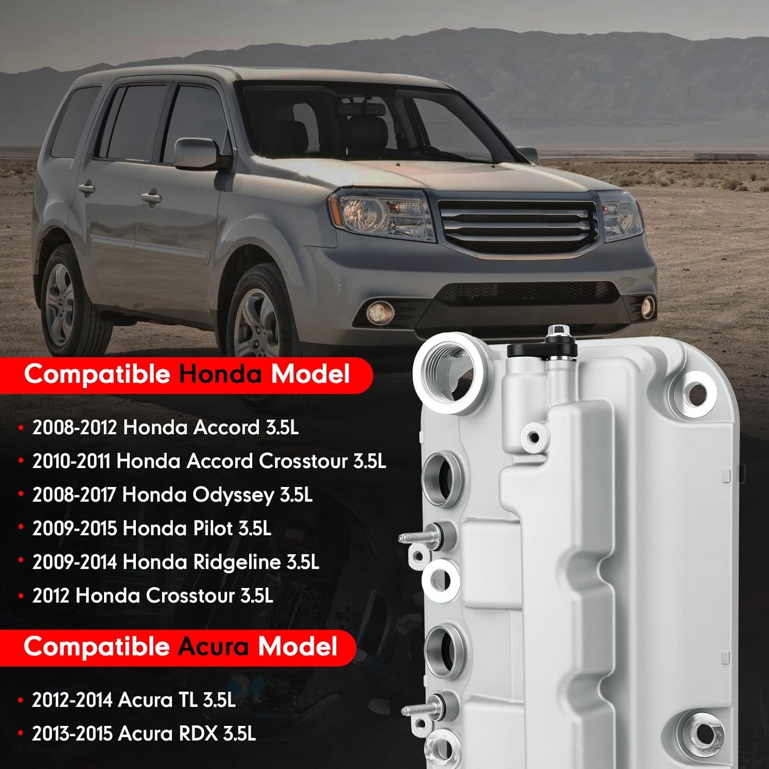 Free eBay listing template designed by dewiso.com Front Rear Engine Valve Cover Compatible with 2008-2017 Honda Accord Crosstour Odyssey Pilot Ridgeline 3.5L,2012-2015 Acura TL RDX 3.5L,Replacement 12310-R70-A00,12310-R70-A10,264-491 FREE AND FAST SHIPPING! Adaptation: Valve Cover with gasket compatible with TL 2012-2014, compatible with RDX 2013-2015, compatible with Crosstour 2012, compatible with Pilot 2009-2015, compatible with Ridgeline 2009-2014, compatible with Oddyssey 2008-2017 Material: The valve cover is made of high quality aluminium, with high strength and stability, the valve cover can work for you for a long time. Replacement part number: 12320-R70-A00,12320R70A00,12310-R70-A00,12310-R70-A10,264-491, the valve cover is installed on a 3.5L engine, please check our photos and ensure that the displayed parts look the same as the model you need Function: Direct mounting for perfect compatibility. The mounting position is the front Rear (next to the radiator) cylinder head cover. Package: 2 x Gasket and 2 x Aluminium valve cover, our gasket has good sealing performance. Product We offer a 30-Day Return Policy on items which you are not completely satisfied with. You have the option for a full-refund or an exchange of the item. No returns are available on items shipped outside of the US . Shipping We offer Free Shipping to the US and ship within 2 business days of payment, usually sooner. We use UPS express shipping. That's why your products are usually delivered within 3 days . Contact We try our very best to make sure every customer is completely satisfied. If there's a problem , message us! We're happy to help. 24/7 live chat available.