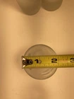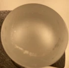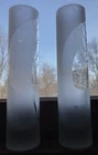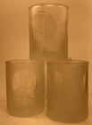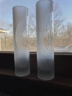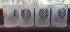 The set of frosted etched glass votive candle holders features an etched birch leaf design. The set includes two tall and four short candle holders. Made of glass, these candle holders have a frosted finish. There is some wear on the bottoms of the votives and one small flaw in the frosted part of one of the tall votives (see pictures). This set is beautiful with lit votive candles on a mantle or for a candle-lit dinner!