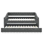 [Stunning Look] This mid-century - inspired daybed features a button tufted back which creates an elegant look. The waved shape arms decorated with nailhead trimming blends chic details with classic style. This daybed lends a sophisticated air to your home. [Functional Trundle] This exceptional piece of living room furniture is manufactured to meet your needs, allowing the cozy bed to not only afford a comfortable seating experience but also one trundle under the bed provide more sleeping space. [Reinforced Frame] The frame of this daybed with drawers is crafted from a combination of eucalyptus wood and MDF board to effortlessly hold up to 500lbs. [Comfortable Experience] Foam padded sides and back that provide optimal back support and comfort.This ful... Full Size Daybed with Twin Size Trundle Upholstered Tufted Sofa Bed, with Button on Back and Copper Nail on Waved Shape Arms,Grey (80.5"x55.5"x27.5") [Stunning Look] This mid-century - inspired daybed features a button tufted back which creates an elegant look. The waved shape arms decorated with nailhead trimming blends chic details with classic style. This daybed lends a sophisticated air to your home. [Functional Trundle] This exceptional piece of living room furniture is manufactured to meet your needs, allowing the cozy bed to not only afford a comfortable seating experience but also one trundle under the bed provide more sleeping space. [Reinforced Frame] The frame of this daybed with drawers is crafted from a combination of eucalyptus wood and MDF board to effortlessly hold up to 500lbs. [Comfortable Experience] Foam padded sides and back that provide optimal back support and comfort.This full-size daybed provides you with a great seating experience that ergonomically supports your back and arms. Meanwhile gorgeous soft fabric ensures you can keep cool for extended periods. [Storage Function] Pull-out drawers provide more storage space for cloths, pillows, toys and so on. [Overall size] 80.5''x55.5''x27.5'' Daybed Size:75x54 inches Trundle size : 75x39 inches No Matress Included. Maximum Weight Capacity:500 lbs. Product Description Item Specifics Brand Unbranded Type sofa Color Grey Upholstery Fabric Polyester Item Length 81.3 in Item Width 12.8 in Item Height 7.3 in About us Dear buyer, Thank you for visiting my store! Our warehouses are located in many regions around the United States. According to the customer's delivery address. Use USPS/UPS/DHL logistics transportation service. Prioritize the best quality logistics solutions to transport packages. Ensure package delivery time, At the same time. Have any after-sales problems, Feel free to contact us. At your service Payment PayPal is our preferred method of payments it's the quickest, easiest and most secure way to pay for your goods or services online. PayPal offers buyer and seller protection should there be a problem. If you do not have a PayPal account, to get started and buy your first item with us is very easy. Simply click on the 'Buy It Now' button and follow the eBay checkout steps. Select PayPal as the payment method you then will be given the chance to enter your card details in to PayPal's secure checkout in order to pay for your order. Shipping 1. Your purchase is shipped directly to you as soon as we have received your cleared payment. 2. Normally all of parcels would be shipped within 3days(From Monday to Saturday). 3. We will send information on eBay or email if the parcel was delayed due to our holiday. 4. We provide three kinds of shipping for choice. Shipping way depend on delivery address. Returns If an unit is received defective, of course we take it back or replace it. If the unit is received as expected, we must charge for our expenses if you want to send it back. We have to charge for the work of handling, retesting and restocking. DESCRIPTION PAYMENT SHIPPING RETURN POLICY CONTACT US Shop Category Store Home Other Hot Item Flextreme 5/8 in. Dia x 50 ft. Black Performance Rubber Garden Hose USD 46.70 8 cu. ft. Dual-Wheel Wheelbarrow, Pro-Grade Poly Bucket, Steel Handles, Dual 16 USD 223.90 Co-op Cycles DRT 1.1 Mountain Bike USD 419.29 6 cu. ft. Steel Tub Wheelbarrow with Wooden Handles and Pneumatic Tire USD 113.90 5.5 cu. ft. Heaped Poly Smart Plastic Garden Cart USD 70.98 Delivery New List Item Amonia 5-piece Dining Set, Turned-Leg Dining Table with 4 Tufted Chairs USD 749.26 Dark Cherry 1pc Sofa Table Open Bottom Shelf Glass Insert Top Cocktail Table Liv USD 395.15 Convertible Combination Sofa Sofa L-Shaped Sofa with Storage Cabinet Footstool, USD 380.92 Amonia 5-piece Dining Set, Turned-Leg Dining Table with 4 Tufted Chairs USD 749.26 Rustic Style Antique White 1pc SOFA TABLE Open Bottom Shelf Plank Style Table To USD 358.70 Help & Info Payment Policy Shipping Policy Return Policy FAQ About Us Full Size Daybed with Twin Size Trundle Upholstered Tufted Sofa Bed, with Button on Back and Copper Nail on Waved Shape Arms,Grey (80.5"x55.5"x27.5") [Stunning Look] This mid-century - inspired daybed features a button tufted back which creates an elegant look. The waved shape arms decorated with nailhead trimming blends chic details with classic style. This daybed lends a sophisticated air to your home. [Functional Trundle] This exceptional piece of living room furniture is manufactured to meet your needs, allowing the cozy bed to not only afford a comfortable seating experience but also one trundle under the bed provide more sleeping space. [Reinforced Frame] The frame of this daybed with drawers is crafted from a combination of eucalyptus wood and MDF board to effortlessly hold up to 500lbs. [Comfortable Experience] Foam padded sides and back that provide optimal back support and comfort.This full-size daybed provides you with a great seating experience that ergonomically supports your back and arms. Meanwhile gorgeous soft fabric ensures you can keep cool for extended periods. [Storage Function] Pull-out drawers provide more storage space for cloths, pill