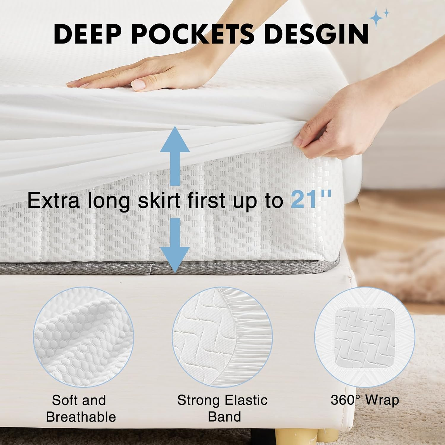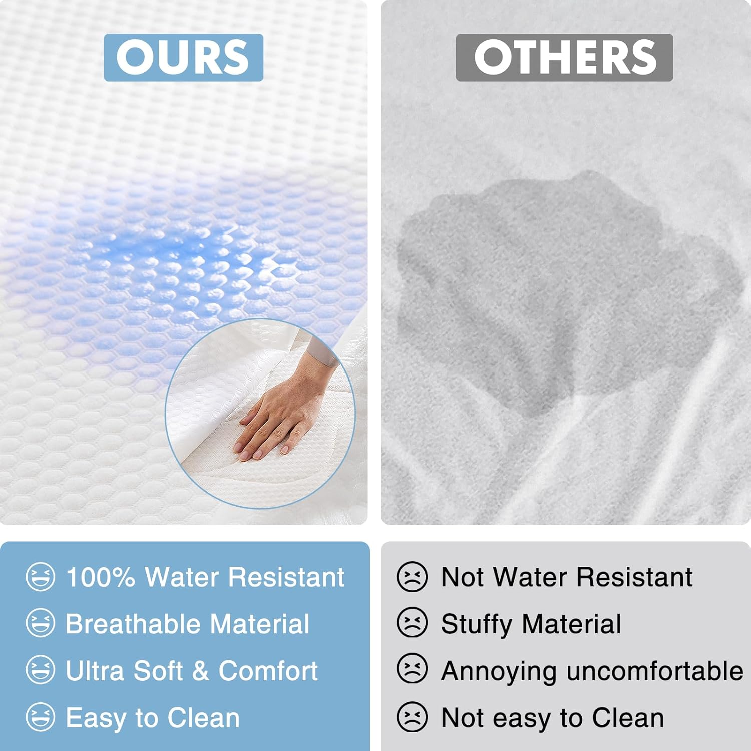 Waterproof Quilted Mattress Protector Breathable Noiseless Mattress Cover Pad