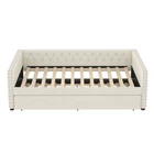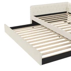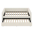 Beige linen twin daybed with storage drawers and sofa bed function