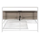 Weight & Dimensions: Overall Product Dimension:75.2"L x 55.7"W x 39"H Detail Product Dimension:Please refer to the Size image Number of Package:1 Overall Product Weight:88.8 LBS Weight Capacity:Bed:350LBS/Trundle:350lbs Number of Slats:Bed:13 /Trundle:16 Recommended Mattress Thickness:Bed:6-8'' /Trundle:4-6'' Specifications: Product Type:Metal Bed Size:Full Color: White Product material:Metal and Wood Assembly Required:Yes Box Spring Required:No Mattress Included:No Estimated Time to Assemble:0.5 hour Suggested Number of People:2 Additional Tools Required :All Tools Included/Screwdriver Avoid power tools:Yes Notes:Manual measurement has been used,there may be some reasonable error. All the pictures are taken by actual samples, slight chromatic aberration may occur due to lighting or display. {Modern Style and Exquisite Craftsmanship}The combination of metal bed frame and beautiful wooden board brings a natural accent to your home. Modern rustic style and versatility for many occasions, from large bedrooms to small apartments. {Extra sleeping space}This bed comes with a trundle, which is a perfect choice for sleeping-over lovers. This multi-functional daybed with trundle is designed for rooms with limited floor space. It provides two additional sleep areas for overnight friends or family members. It gives you flexibility to accommodate a variety of options. 2 of 4 wheels has brakes to stop trundle from move on uneven floor. {With socket and USB interface}The difference of this bed is that there are two shelves at the head of the bed, and with socket and USB interface, it is very convenient for you to use the computer or charge your mobile phone on the bed . At the same time, you can place some simple items you often use on the bedside shelf. {Sturdy and Noise-Free}Our bed frames are made of metal and wood, ensuring a strong and durable structure for long-term use. And the middle support legs and beam as well as the firm screw connection greatly improve the stability and provide better support for the bed frame. {No Box Box Required}This metal bed frame is compatible with full size mattresses (mattress not included), no box spring required. 13 bed slats provide good support for the mattress. Weight capacity: Bed:350lbs. Trundle:350lbs