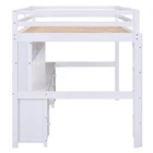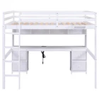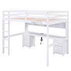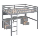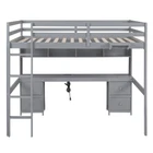 Wood Bed Frame Full Size Loft Bed with Desk, Cabinets, Drawers and Bedside Tray Features [Sturdy Wood Frame] Strong wood frame that includes an integrated ladder, full-length guardrails and secured wood slats to ensure security and stability. No additional box spring or foundation required. [Multiple Storage] Comes with 4 cabinets, 4 drawers and 1 bedside tray, this loft bed is great for storing your clothes, toys or books. [Charging Station] Featured with 2 Standard Plug Outlets & 2 USB Ports, the built-in desk is an ideal setup for charging your phones, lamps and other devices. [Multifunctional Design] In addition to the sleeping space, the 15.8''x 76'' built-in desk is a good helper for your study or leisure. [No Box Spring Required] The wood slats support the mattresses not to slide and increase the service life. Description Full Size Loft Bed with Desk, Cabinets, Drawers and Bedside Tray, Charging Station, Gray This versatile loft bed can meet your various needs. 4 cabinets, 4 drawers and 1 bedside tray provide ample storage space. The built-in desk with 2 Standard Plug Outlets & 2 USB Port brings convenience to your entertainment or study. Description Material Pine Wood+MDF Size Full Color Gray Numbers of Package 2 Spring Box No need Assembly Required Yes Origin Vietnam Dimensions Overall Product Dimension 78.4''L x 57.6''W x 65.8''H Package Dimension Please refer to the Specification Full Bed 76'' x 54'' Total Height 65.8'' Number of Bed Slats 14pcs Recommend Mattress Thickness of Bed 6'' Overall Product Weight 182lb Bed Weight Capacity(Upper/Middle/Down) 600lb