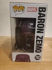 Enhance your Marvel collection with the Funko Pop! Baron Zemo #702 from "The Falcon and the Winter Soldier" series. This vinyl bobblehead features the iconic villain in his intricate costume, as seen in the hit Disney+ show. A must-have for fans, this piece captures the essence of Baron Zemo, down to the chilling detail of his mask. Not just a display-worthy collectible, this model comes with a dedicated protector to keep it pristine. Released in 2020, it's part of the highly sought-after Pop! Vinyl line, and being vaulted adds to its exclusivity. Whether for display or as part of a larger collection, this Funko figure is a standout piece commemorating the thrilling "Captain America: The Winter Soldier" movie and the compelling TV show it inspired.