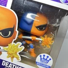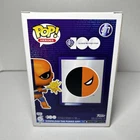 This is a Funko Pop! vinyl figure of Deathstroke, part of the DC Universe series. It is an exclusive release from Funko, specifically for Warner Bros. 100. The figure is vaulted and features the character Deathstroke from comic books. It is made of vinyl and comes in box number 477. Never opened